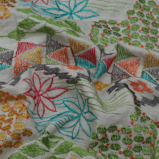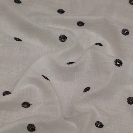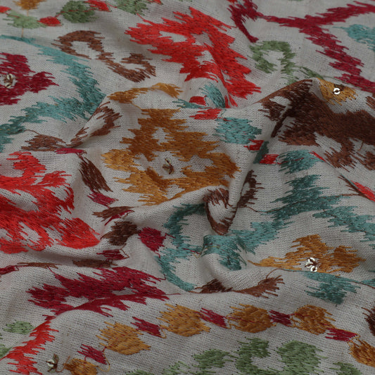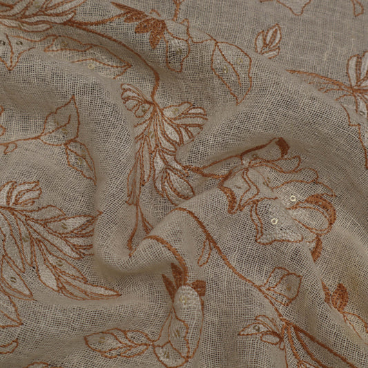 Cream Color Linen Sequins Embroidery Fabric
