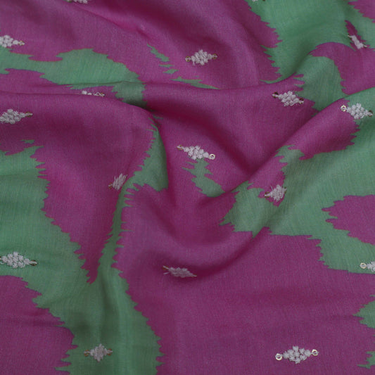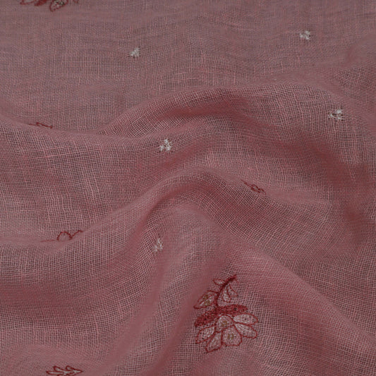 Pink Color Linen Sequins Embroidery Fabric