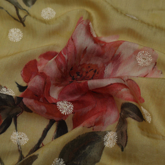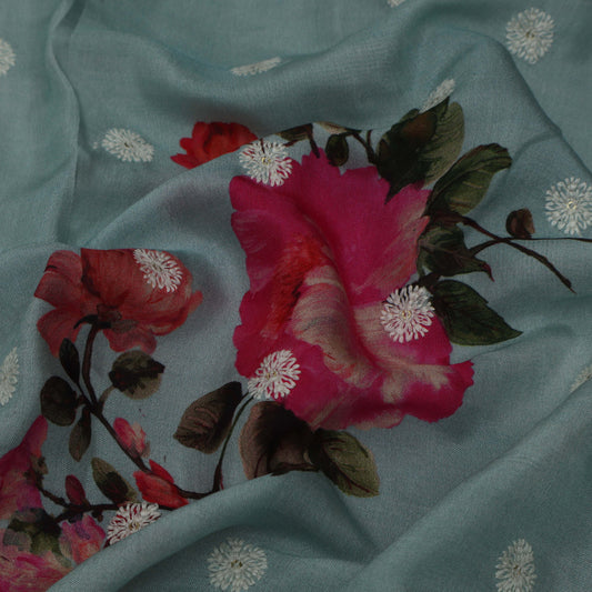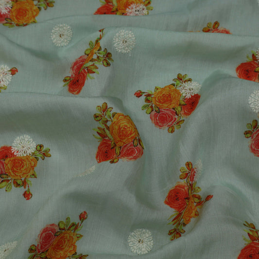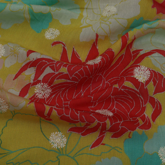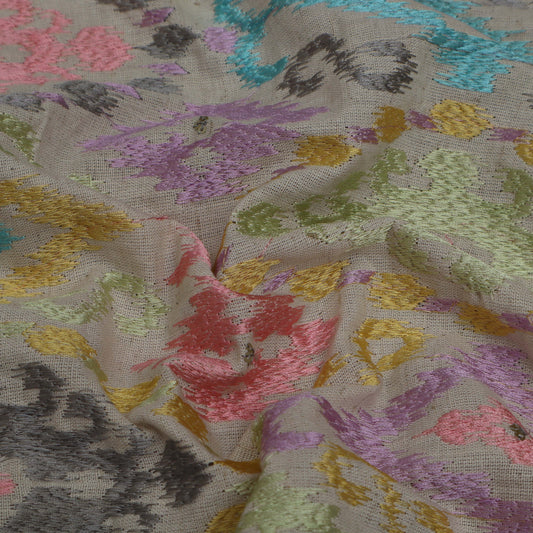 Colored Color Mulmul Embroidery Fabric