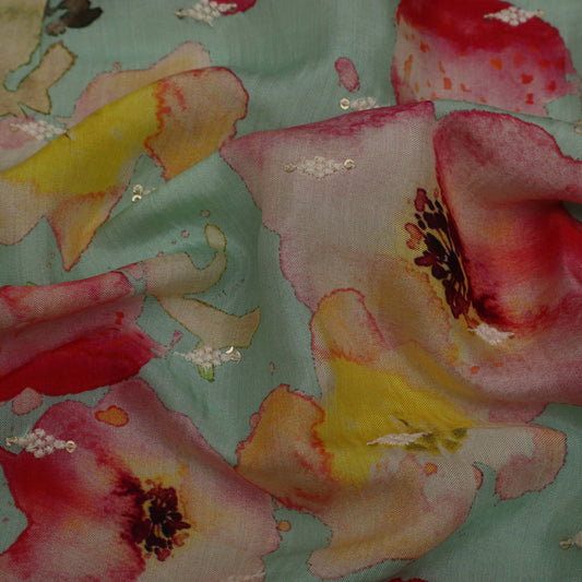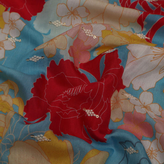 Colored Color Georgette Print Embroidery Fabric