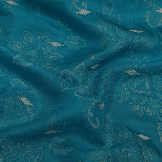 Sky Blue Color Cotton Embroidery Fabric
