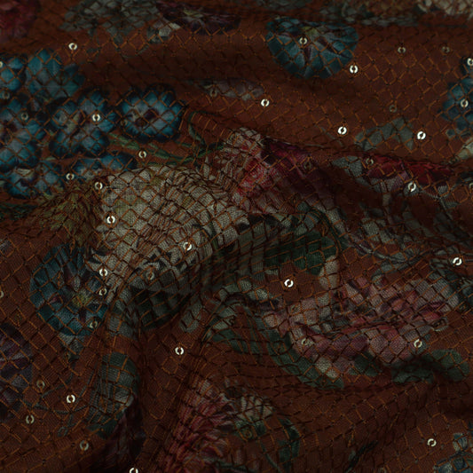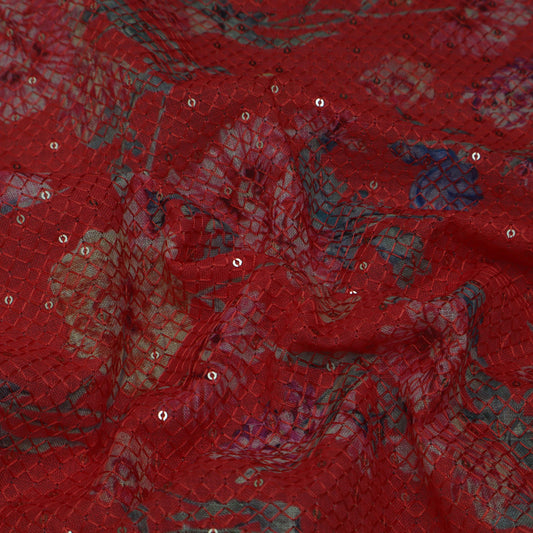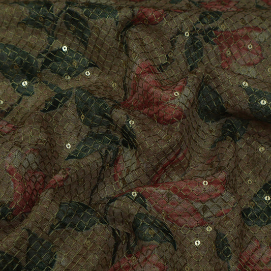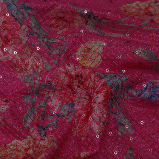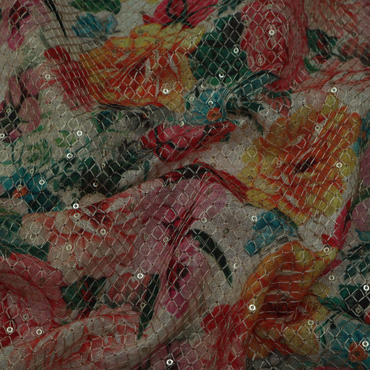 Sold outColored Floral Chanderi Print Fabric