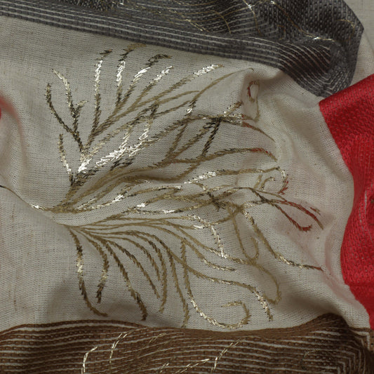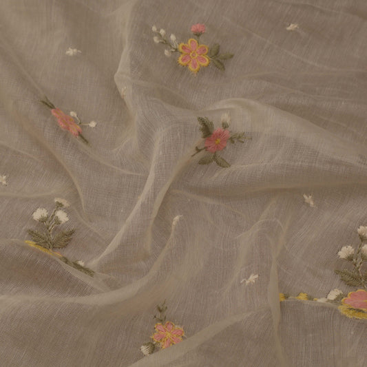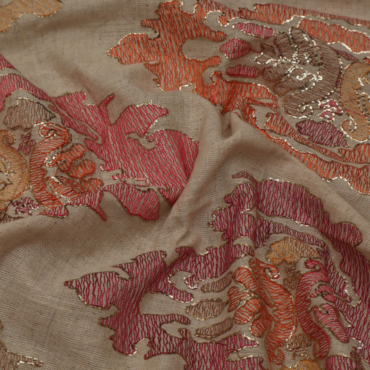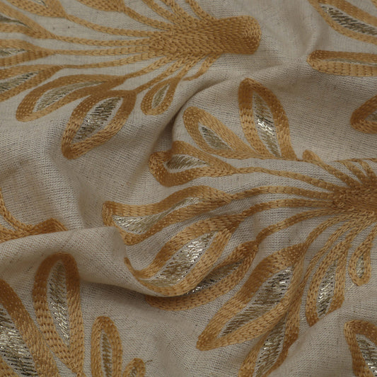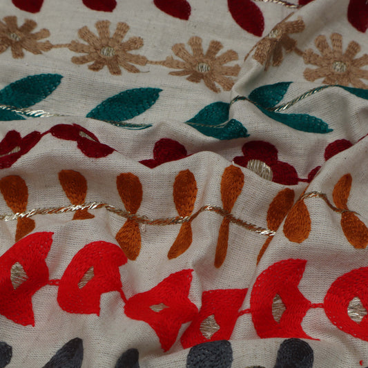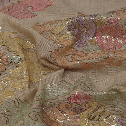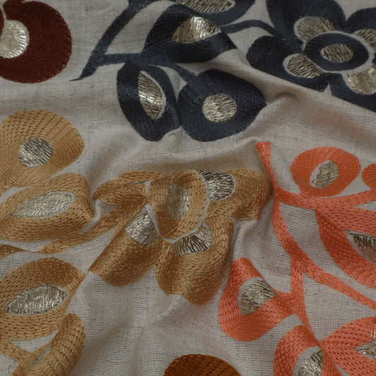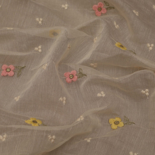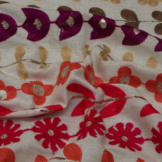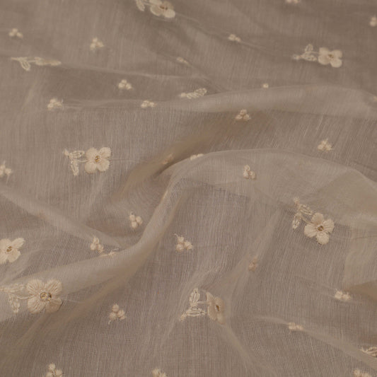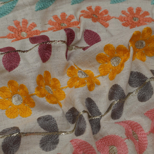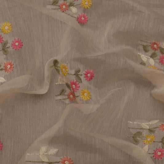 Cream Color Chanderi Embroidery Fabric