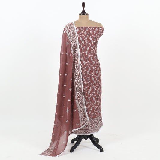 Shaded Cotton Chikan Embroidery Fabric (Cut Pieces 2Mtr)