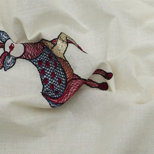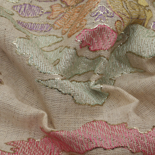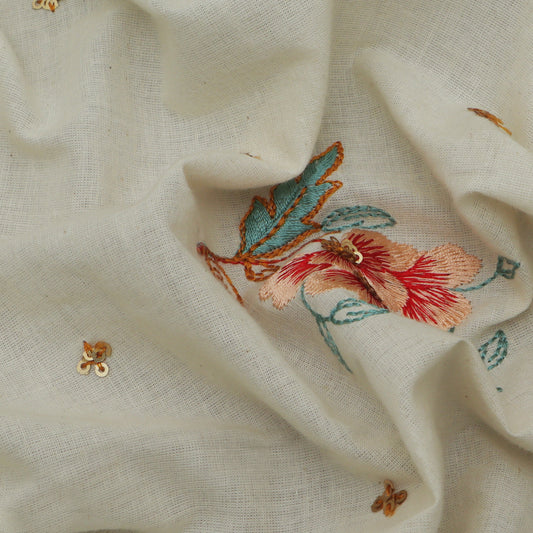 Pale Pink Color Cotton Chikan Embroidery Fabric