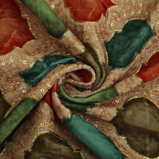 Multicolor Velvet Print Embroidery Fabric
