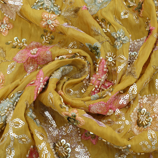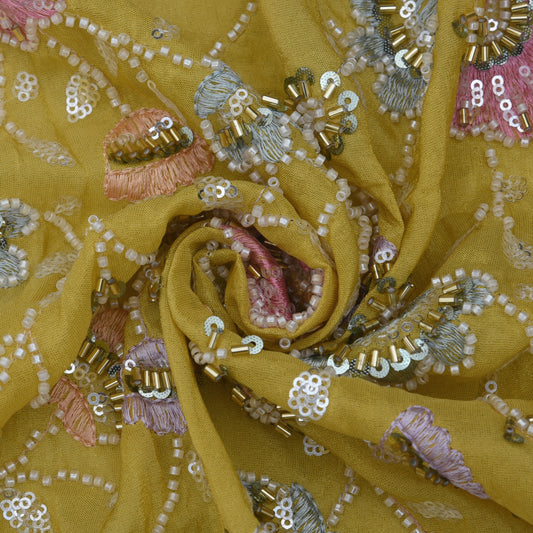 Yellow Color Tissue Embroidery Fabric