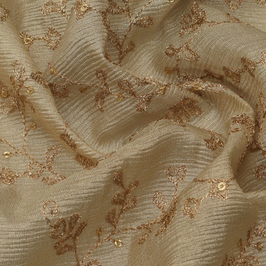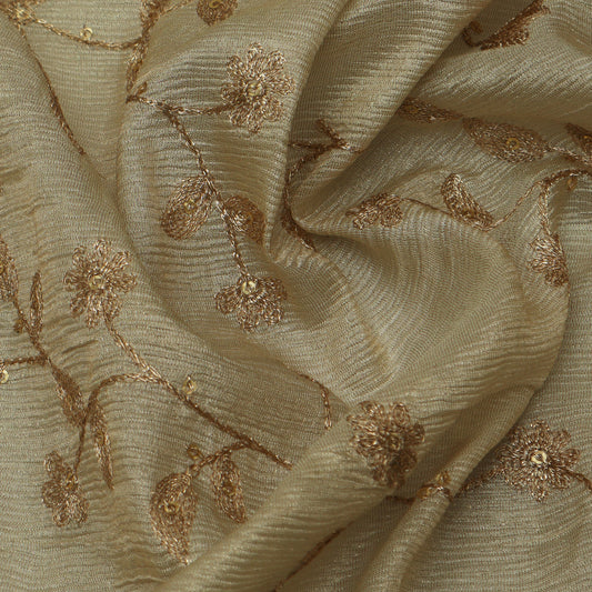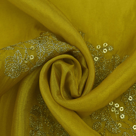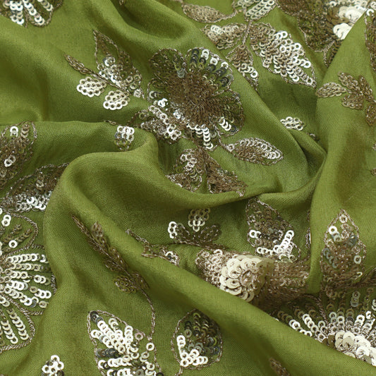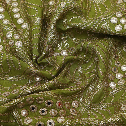 Mehandi Green Color Tissue Zari Embroidery Fabric