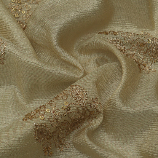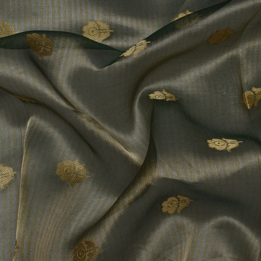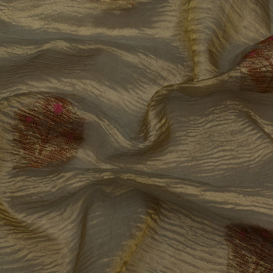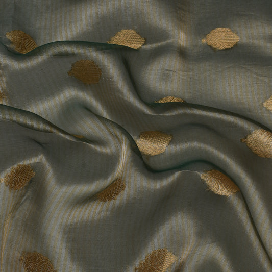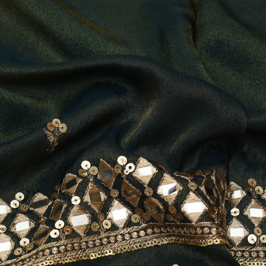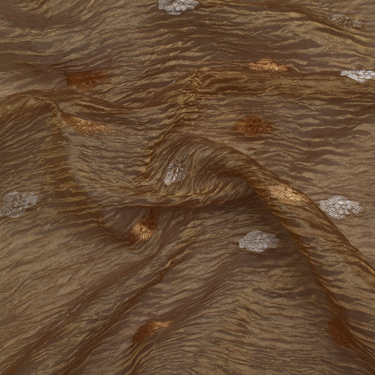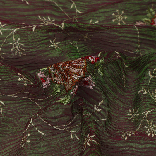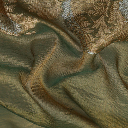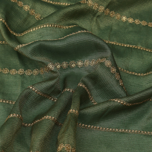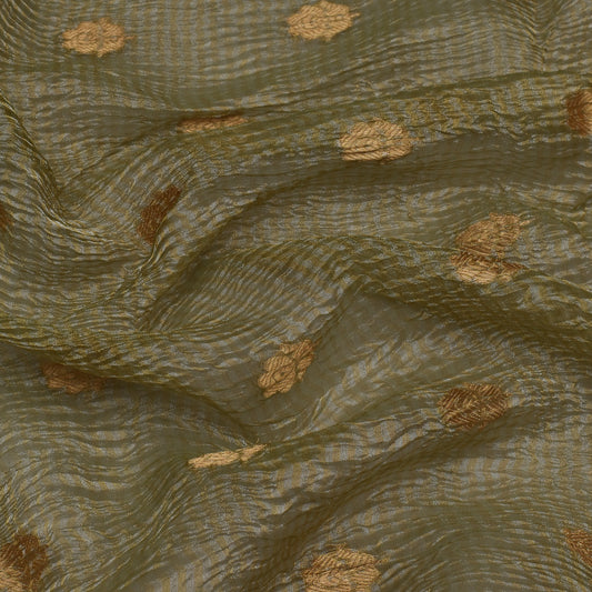 Dark Rama Green Color Crush Tissue Jacquard Fabric