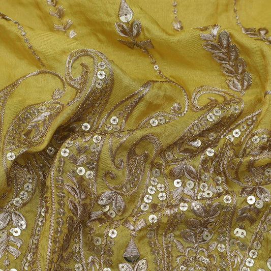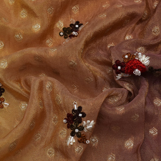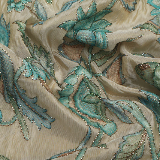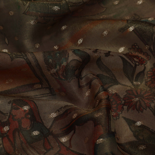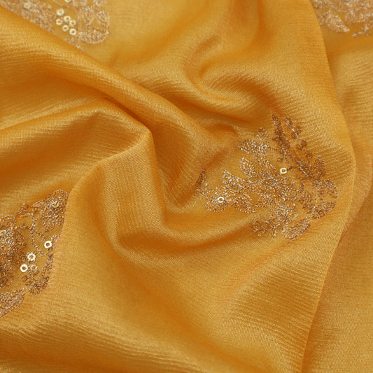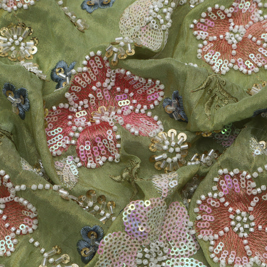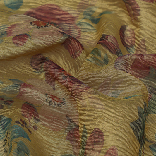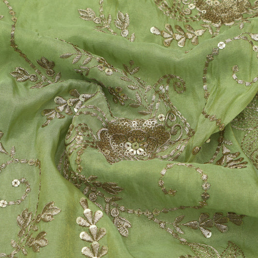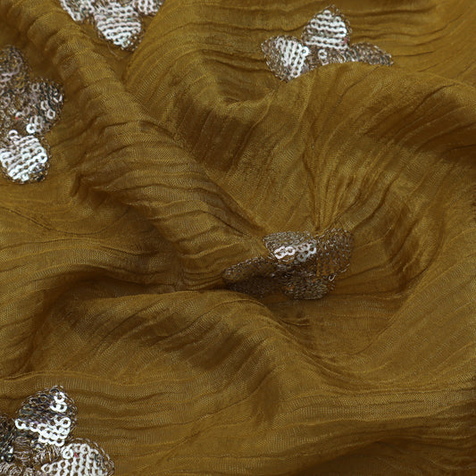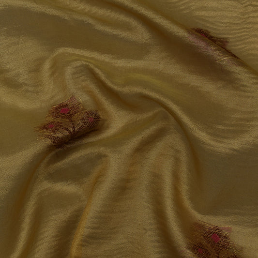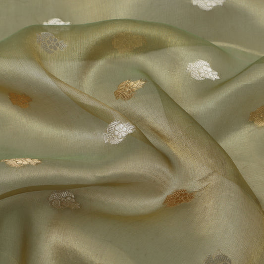 Dark Rama Green Color Crush Tissue Jacquard Fabric