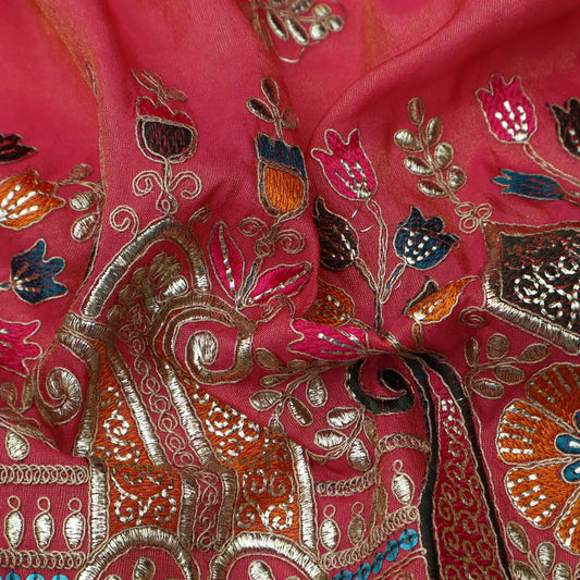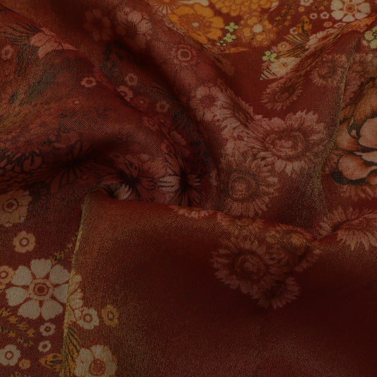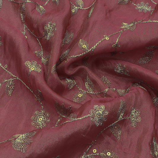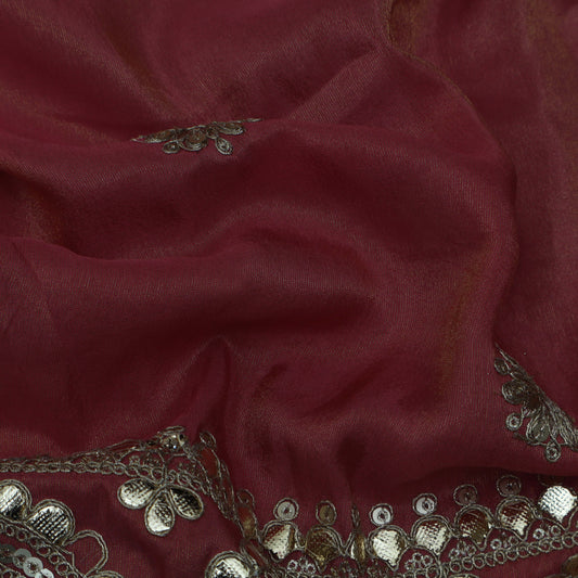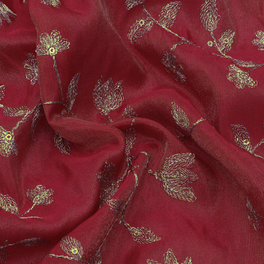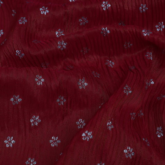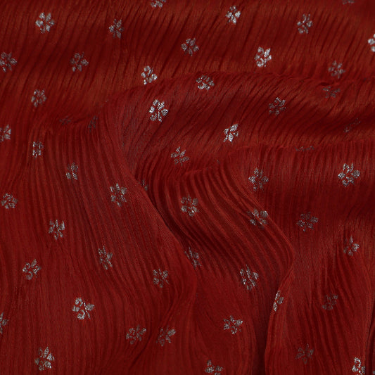 Cherry Red Color Crush Tissue Jacquard Fabric