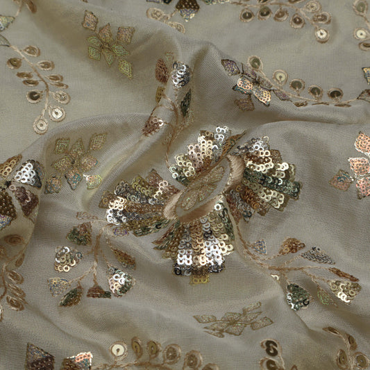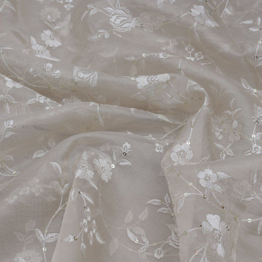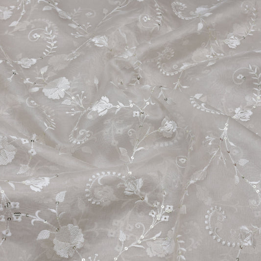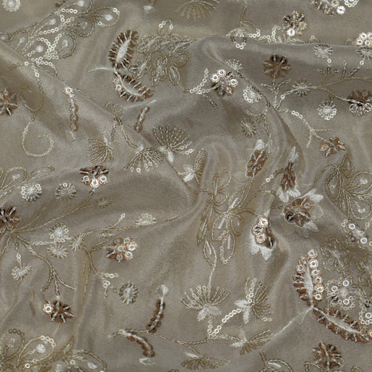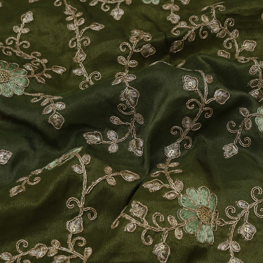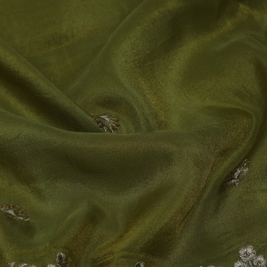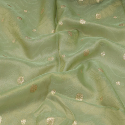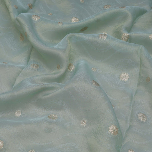 Sea Green Color Organza Tissue Self Jaquard Fabric