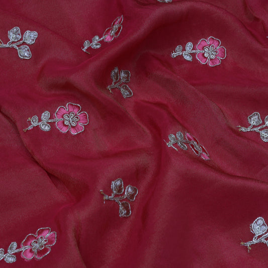 Magenta Color TISSUE ZARI BOOTI Fabric