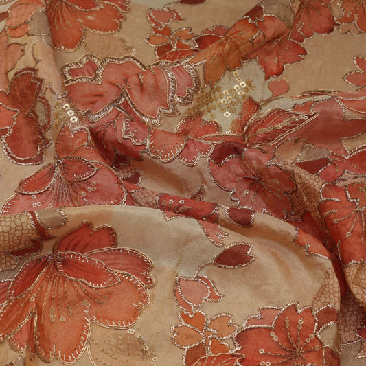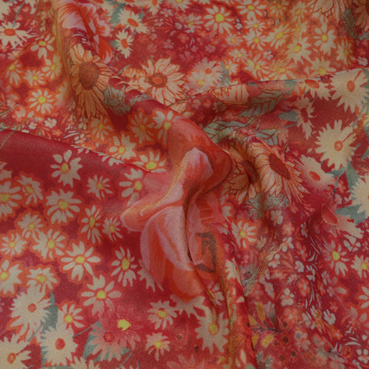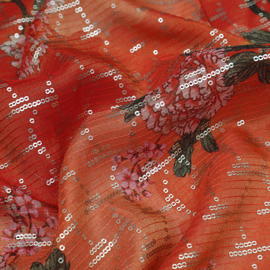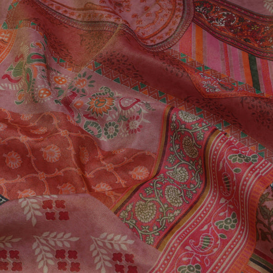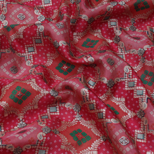 Pink Color Tissue Geogette Print Jaquard Fabric