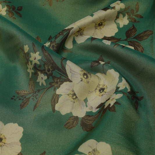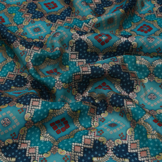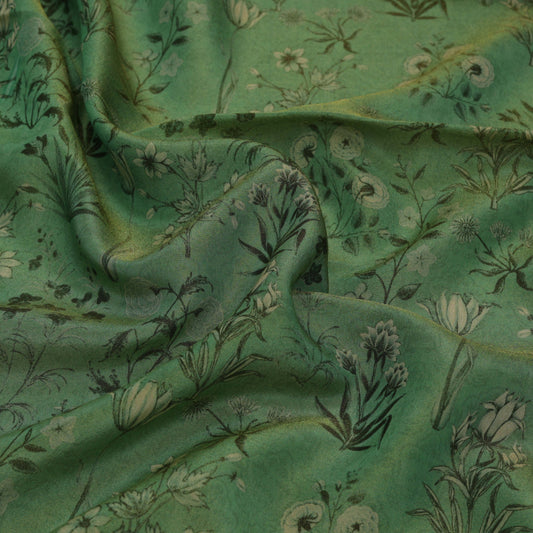 Sea Green Color Tissue Geogette Print Jaquard Fabric
