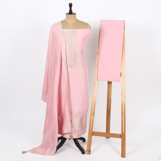 Unstitched Chanderi Suit Set