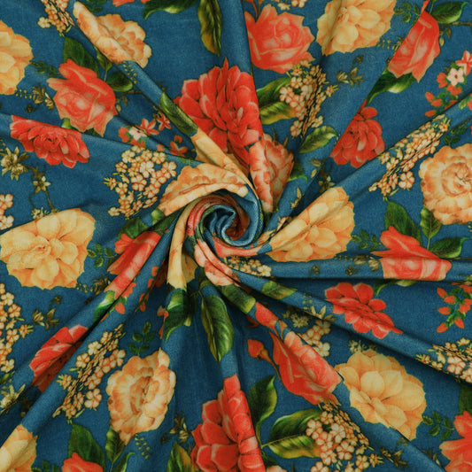 Blue Color Velvet Cut Work Print Embroidery Fabric