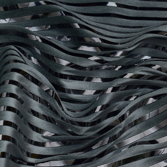 Grey Color Velvet Lycra Stripe Shimmer Fabric