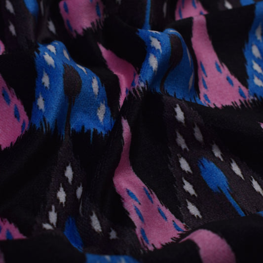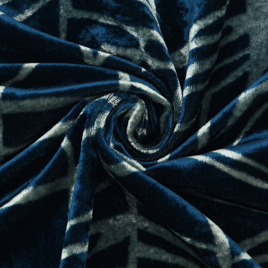 Blue Color Velvet Lycra Stripe Shimmer Fabric