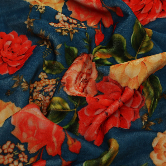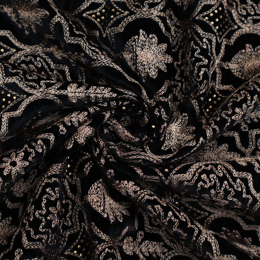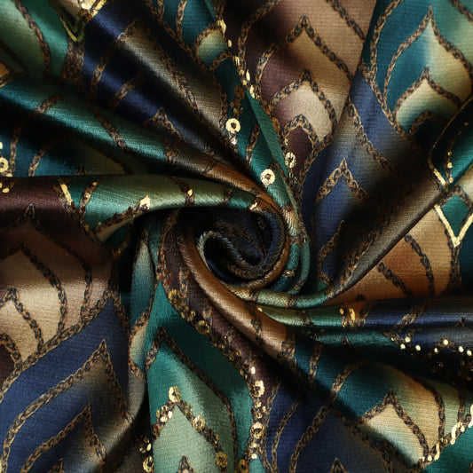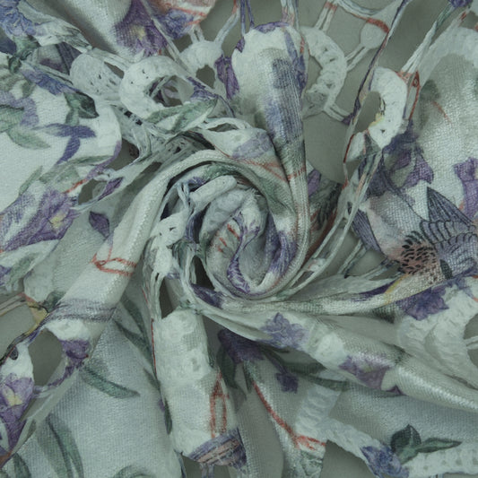 Rama Green Velvet Cut Work Print Embroidery Fabric