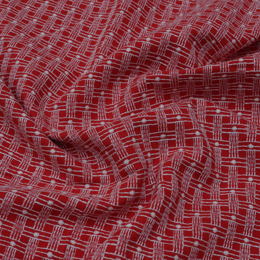 Red Color Woolen Embroidery Fabric