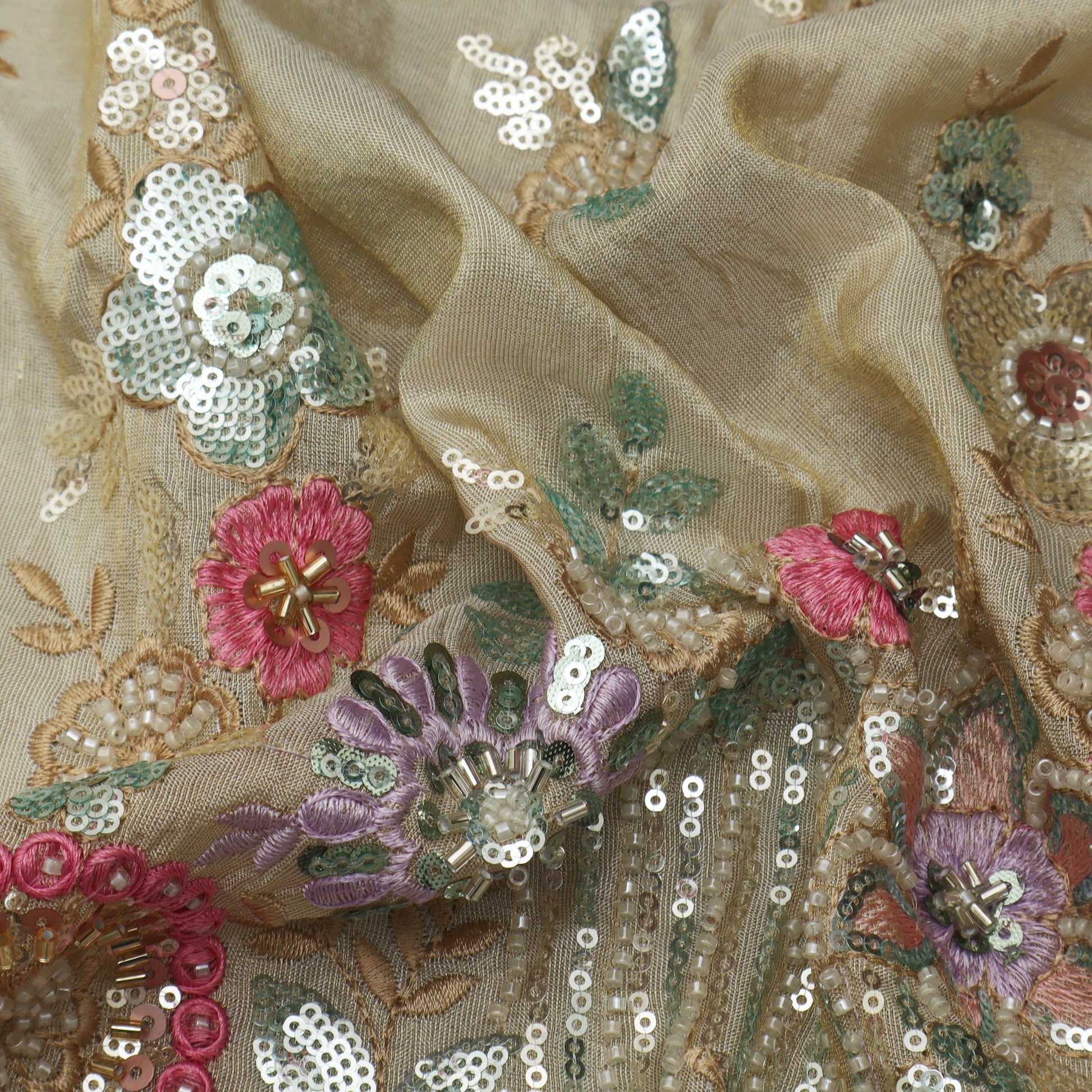 This Beige Color Tissue Embroidery Fabric adds an elegant touch to any project. With its delicate tissue texture and intricate embroidery, it is perfect for adding a touch of sophistication to dresses, home decor, and more. The beige color complements a variety of color schemes, making it a versatile and stylish addition to your fabric collection.