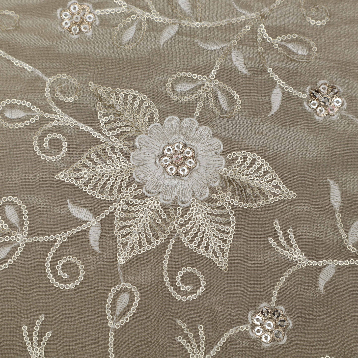Expertly crafted with delicate tissue material, this Beige Color Tissue Embroidery Fabric adds an elegant touch to any project. The intricate embroidery detailing adds texture and dimension, making it a perfect choice for a variety of sewing and crafting projects. Elevate your creations with this high-quality fabric.