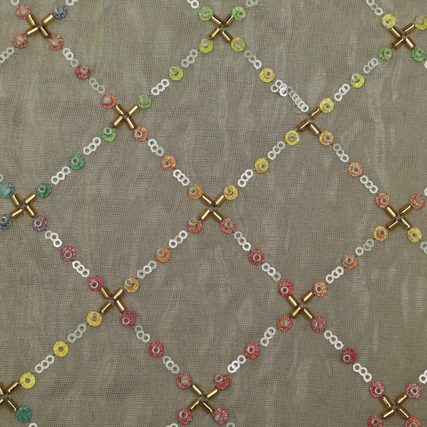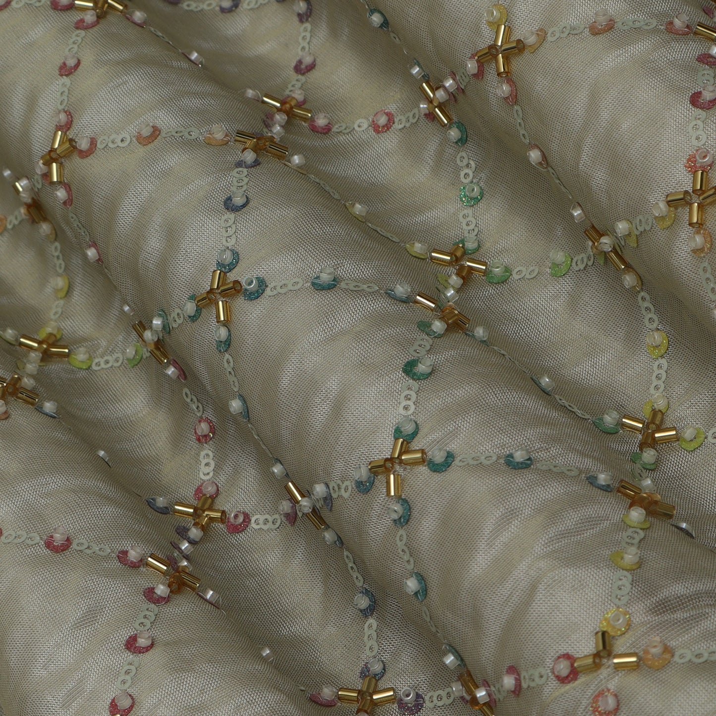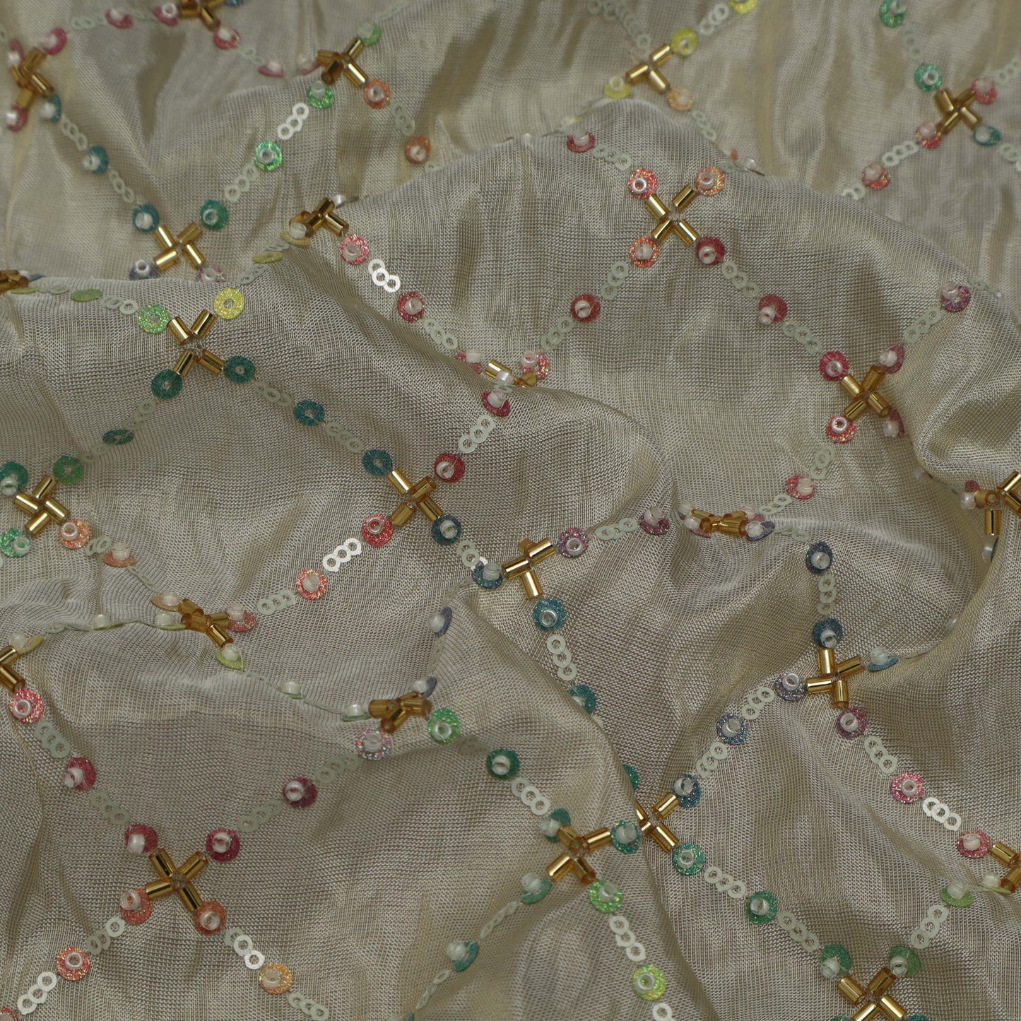 Beige Color Tissue Embroidery Fabric