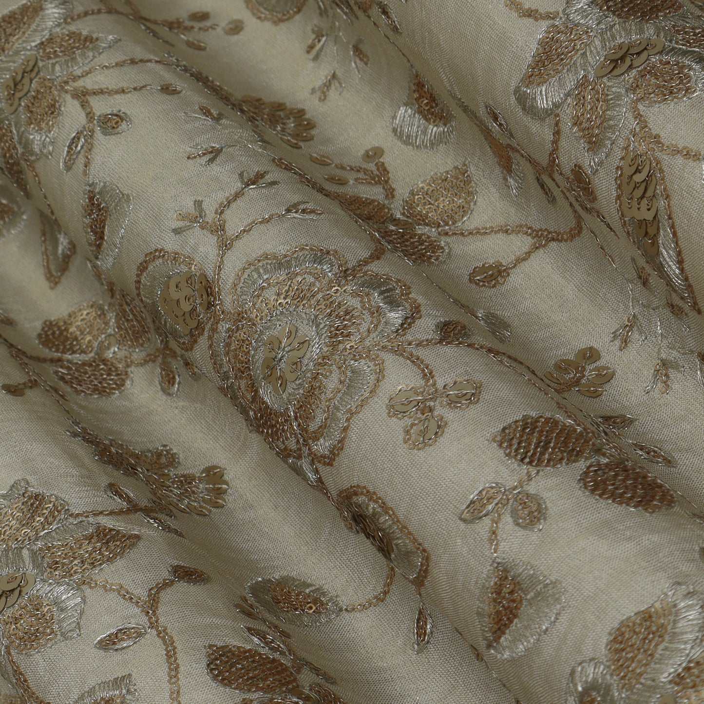 This Beige Color Tissue Embroidery Fabric features delicate embroidery and a neutral beige color, making it a versatile choice for any project. Made from high-quality tissue material, it offers a luxurious look and feel. Perfect for adding texture and elegance to any garment or décor piece.