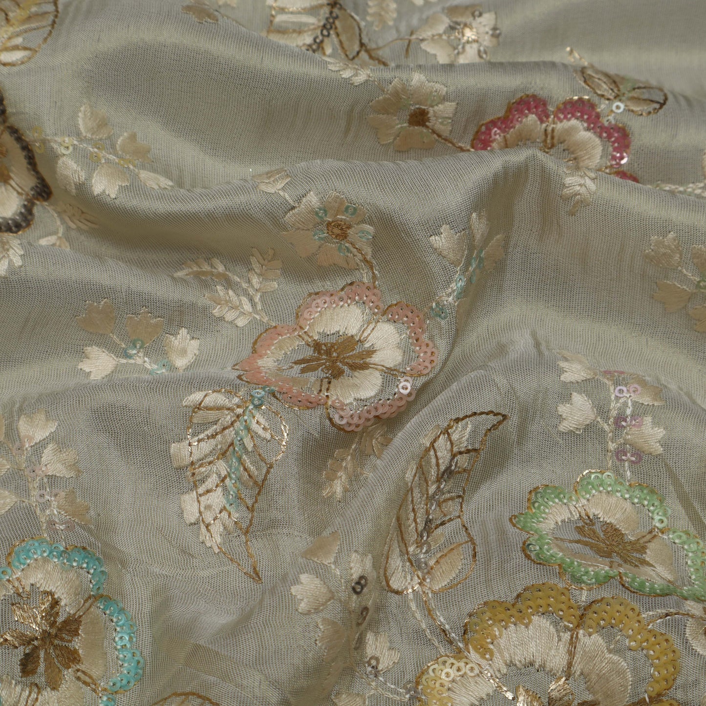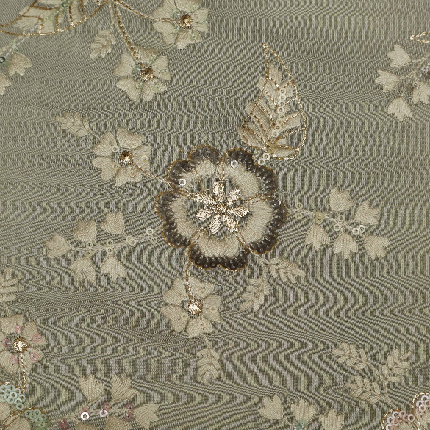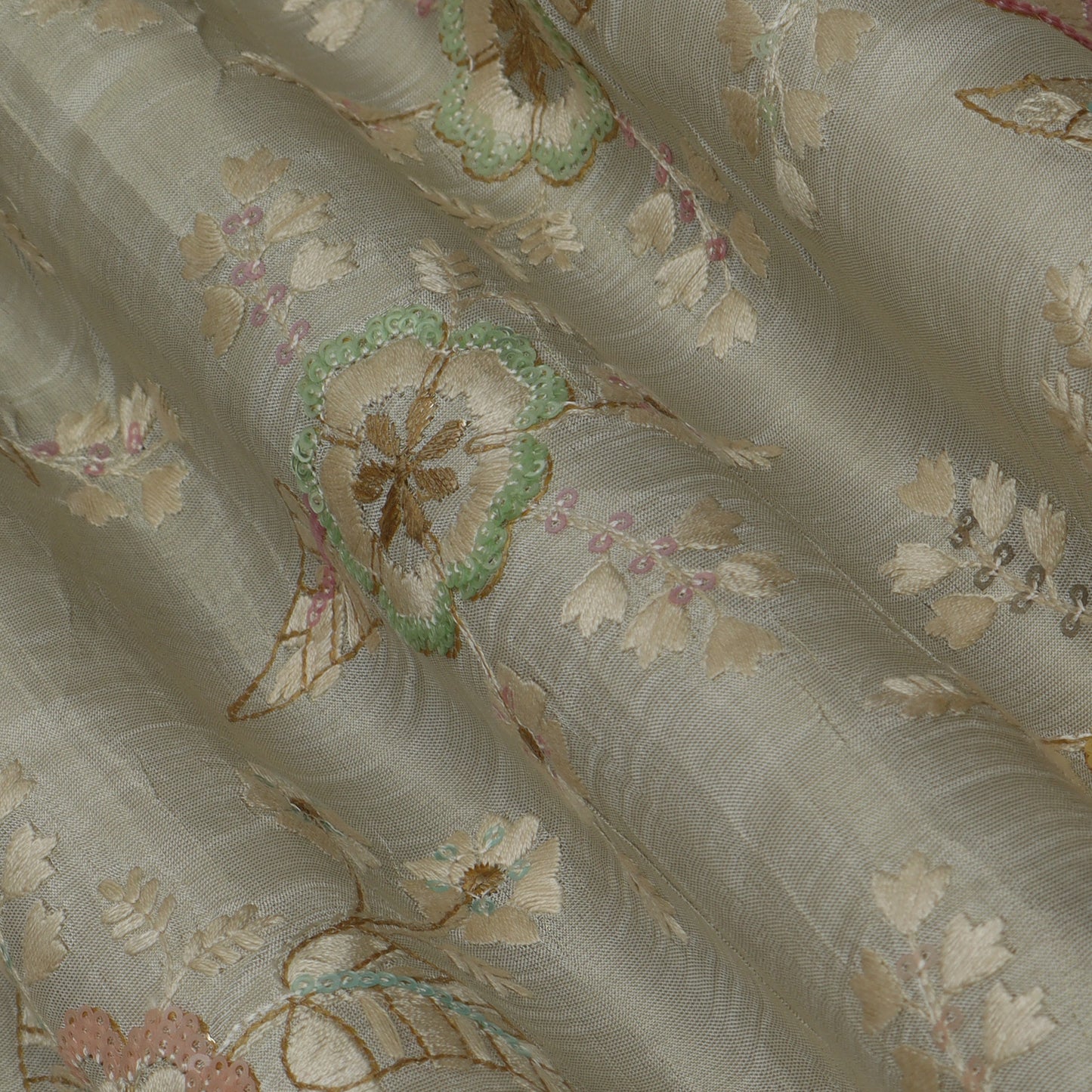 Beige Color Tissue Embroidery Fabric