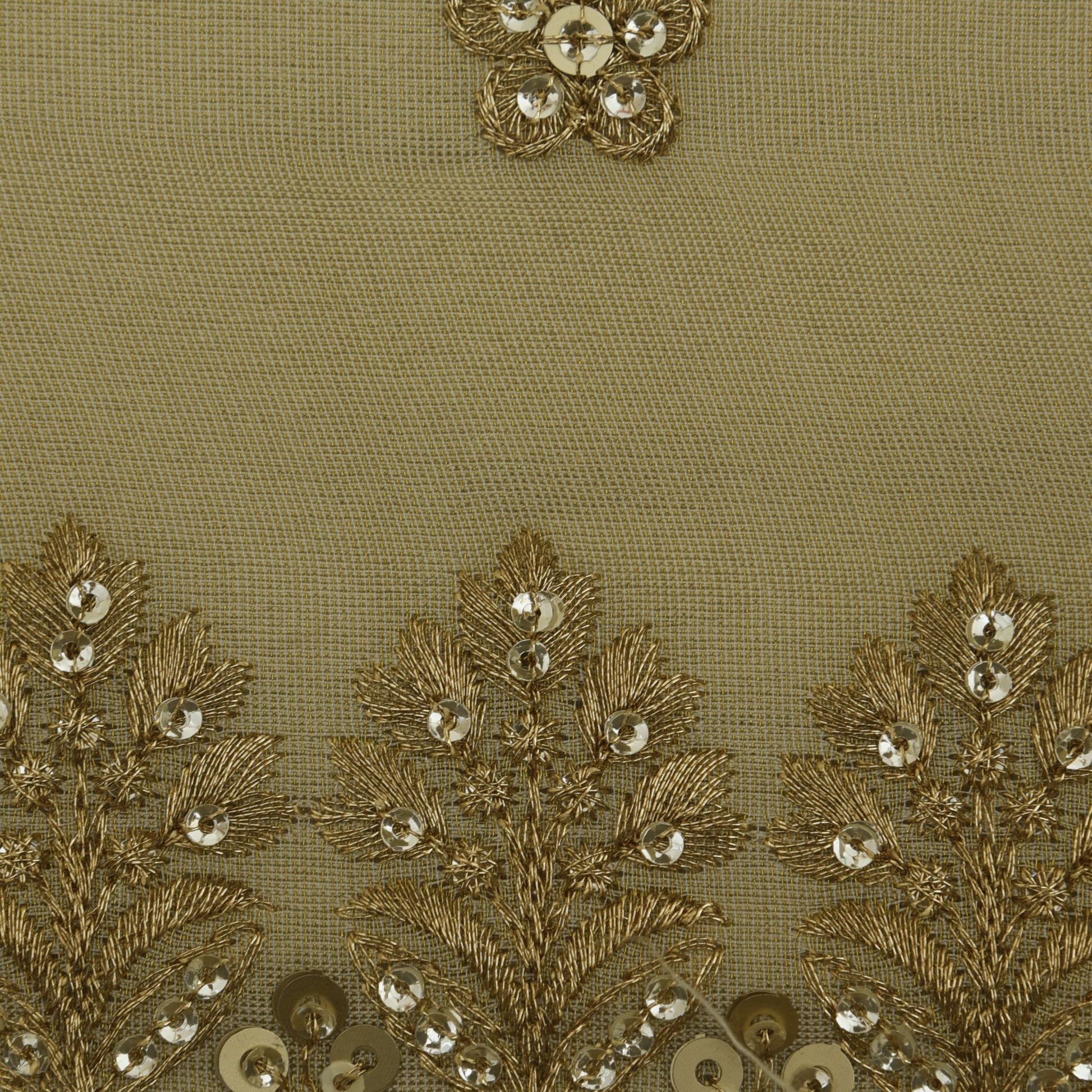 This beige colored tissue embroidery fabric is a versatile and elegant choice for any project. With its delicate embroidery and soft texture, it adds a touch of sophistication to any design. Made from high-quality materials, it provides both durability and beauty. Upgrade your creations with this timeless fabric.