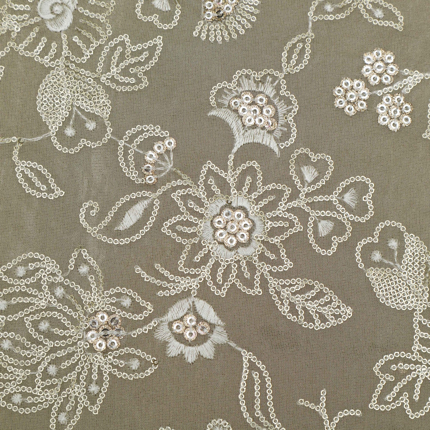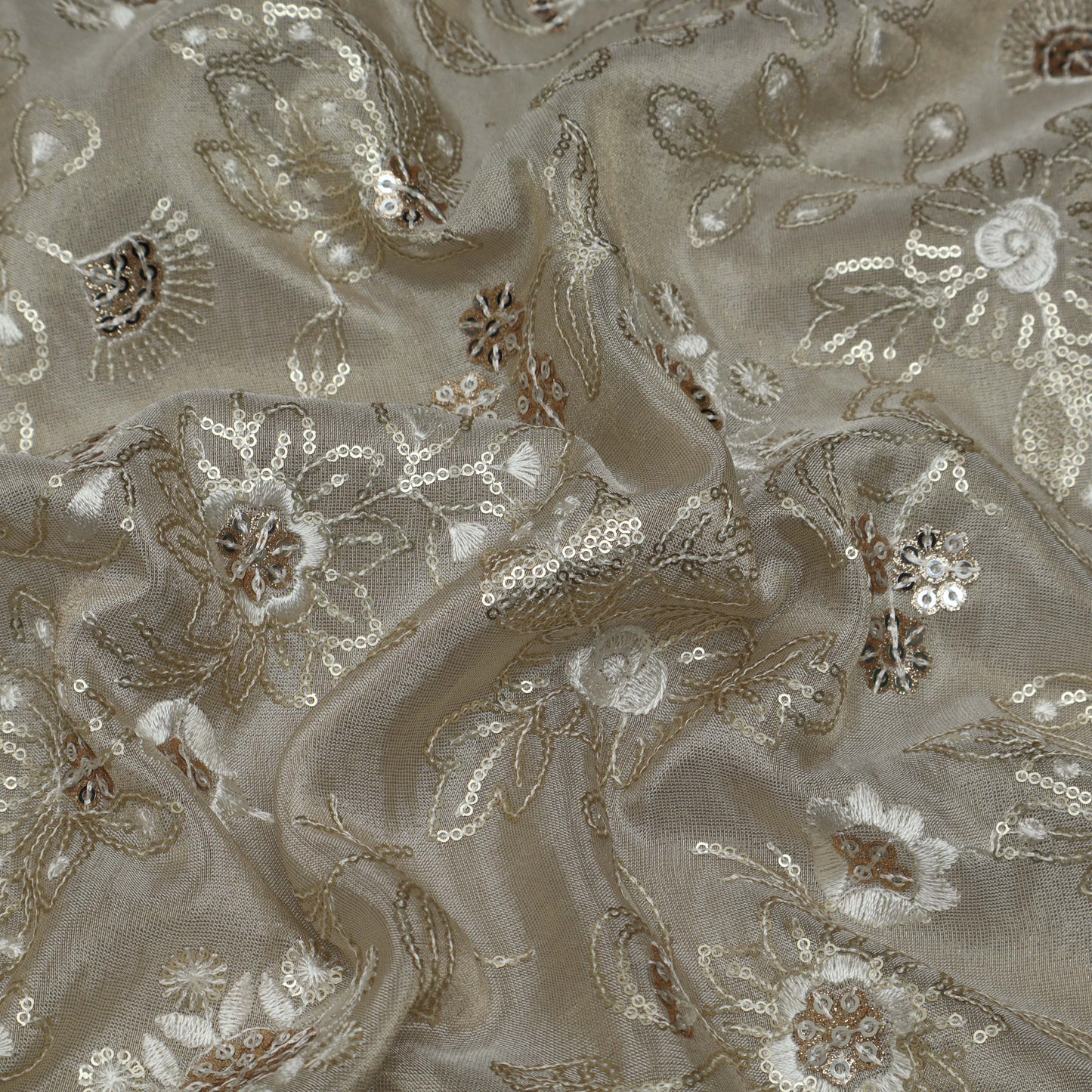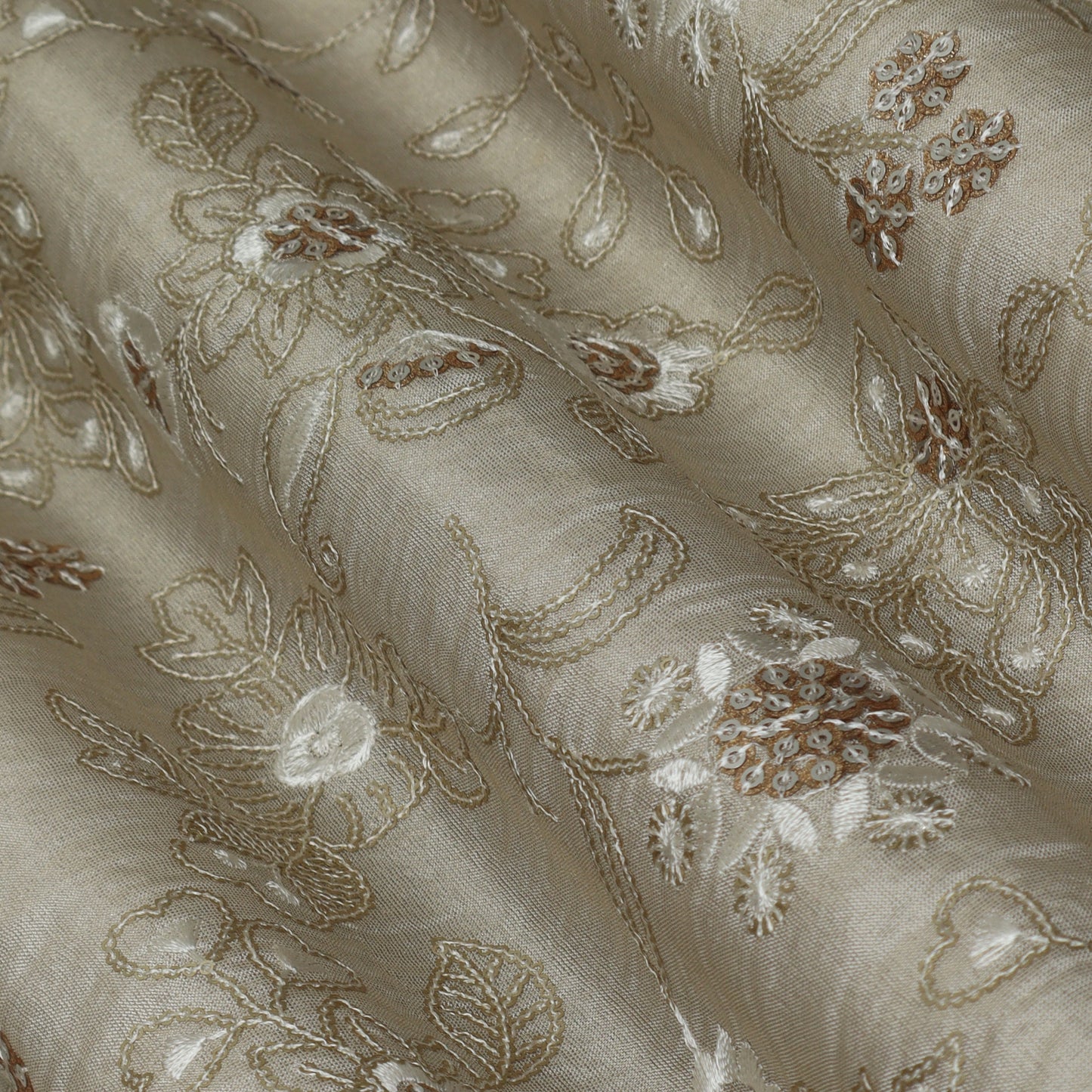 Beige Color Tissue Embroidery Fabric
