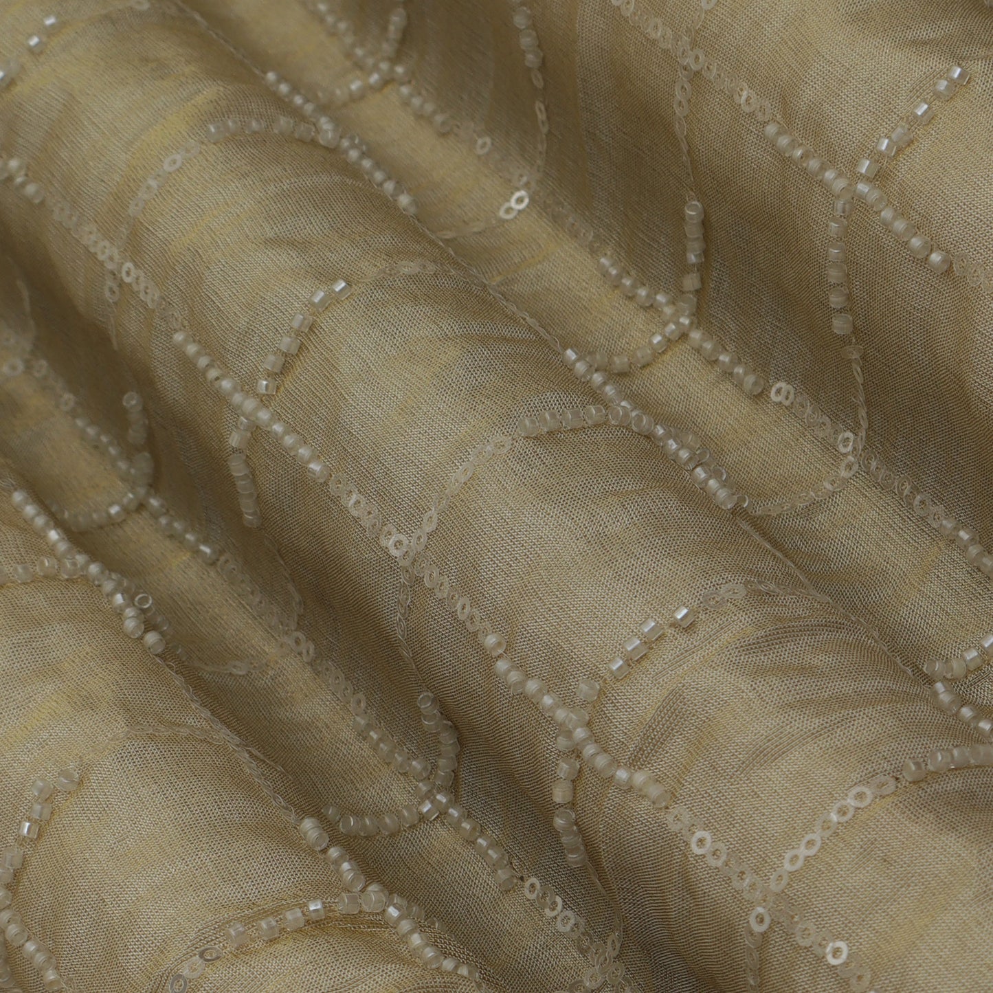 Beige Color Tissue Sequins Embroidery Fabric