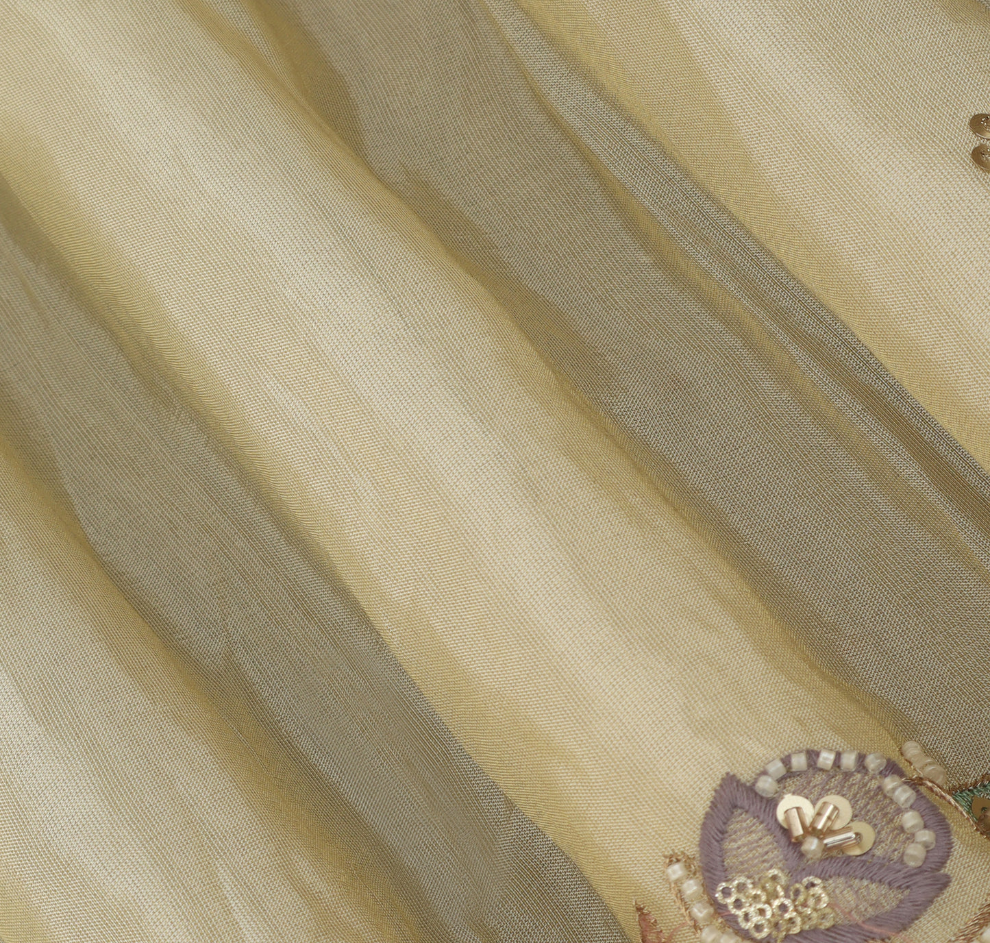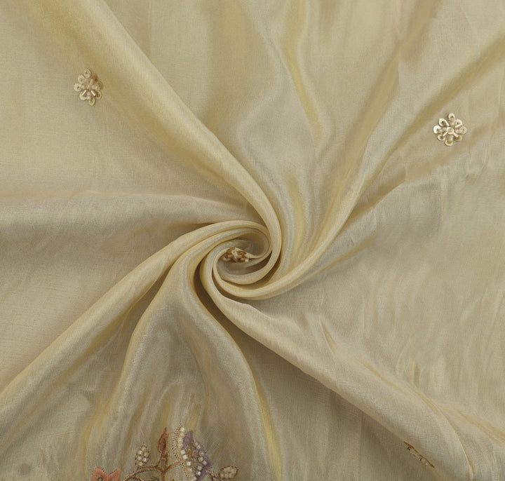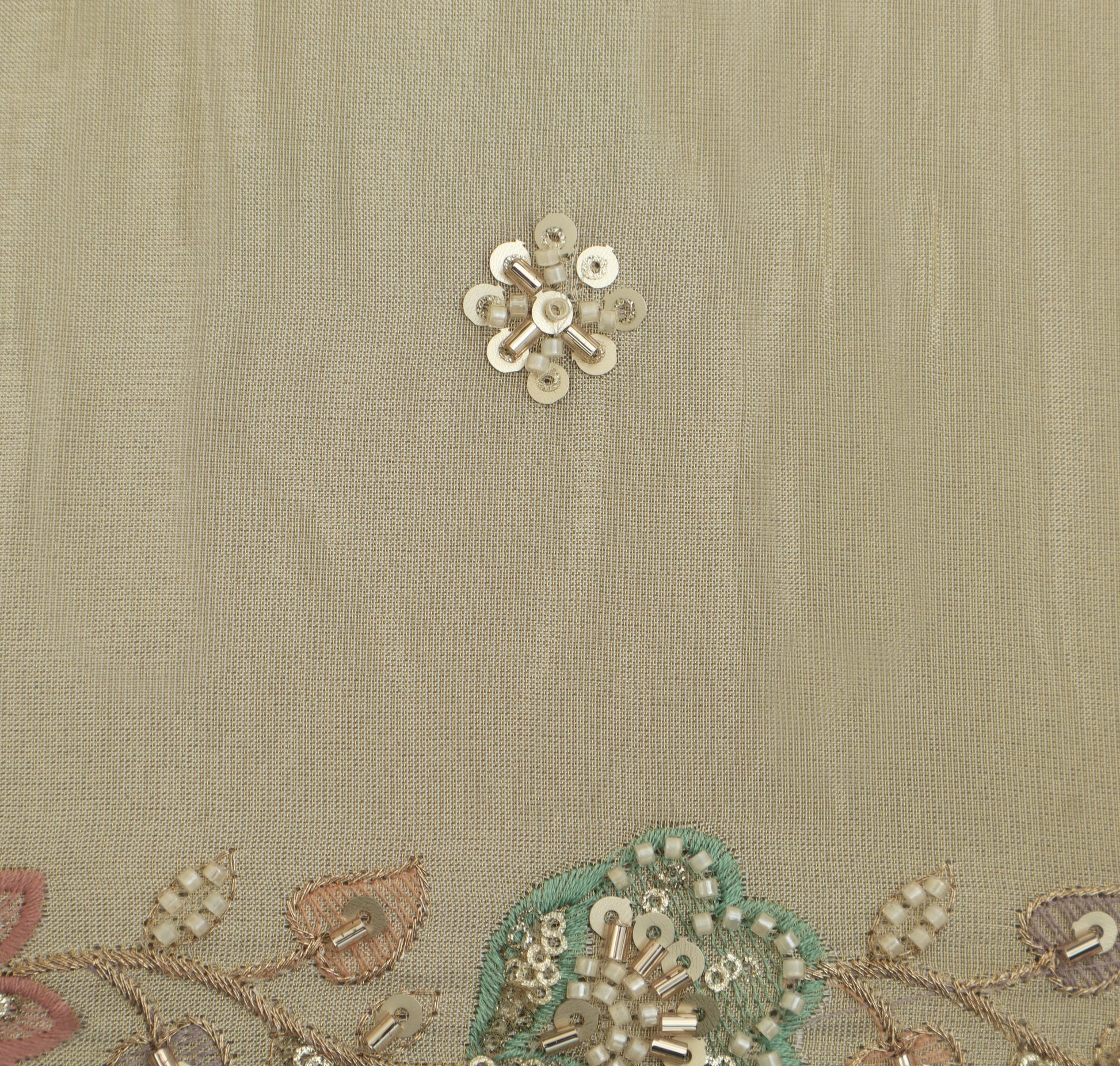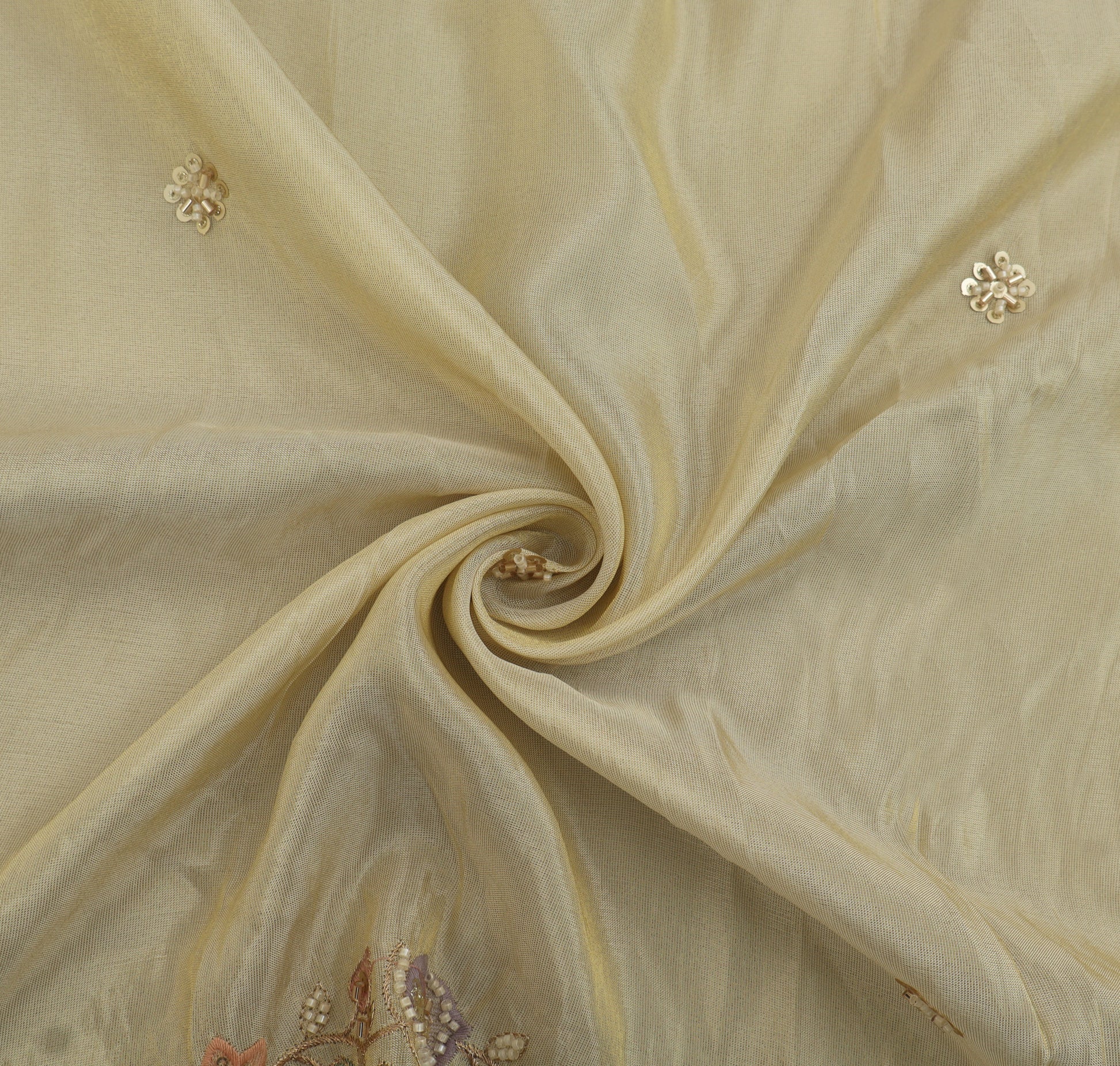 Enhance any garment with our Beige Color Tissue Sequins Embroidery Fabric. This versatile fabric adds a touch of elegance with its neutral beige color and beautiful sequin embroidery. Perfect for special occasions or everyday wear, our fabric is expertly crafted and guaranteed to elevate your wardrobe.