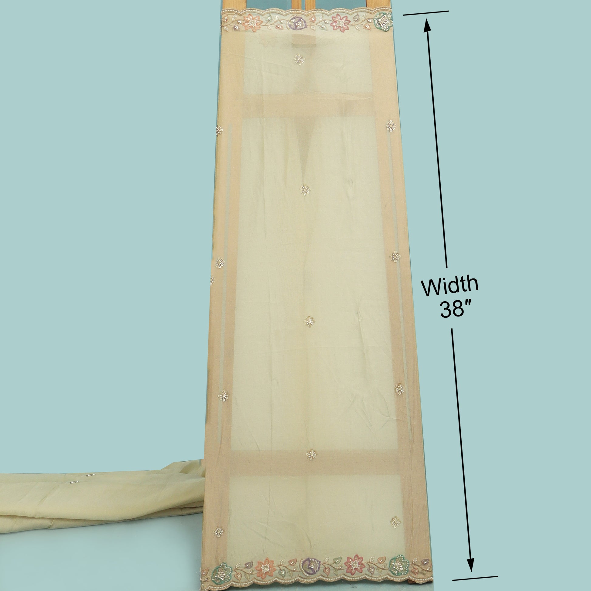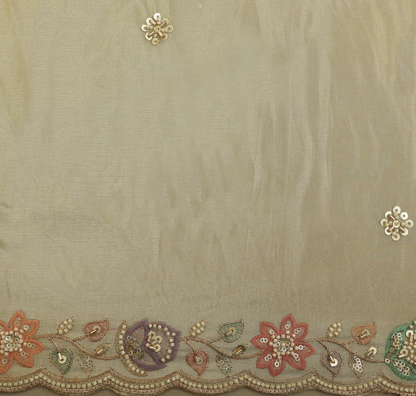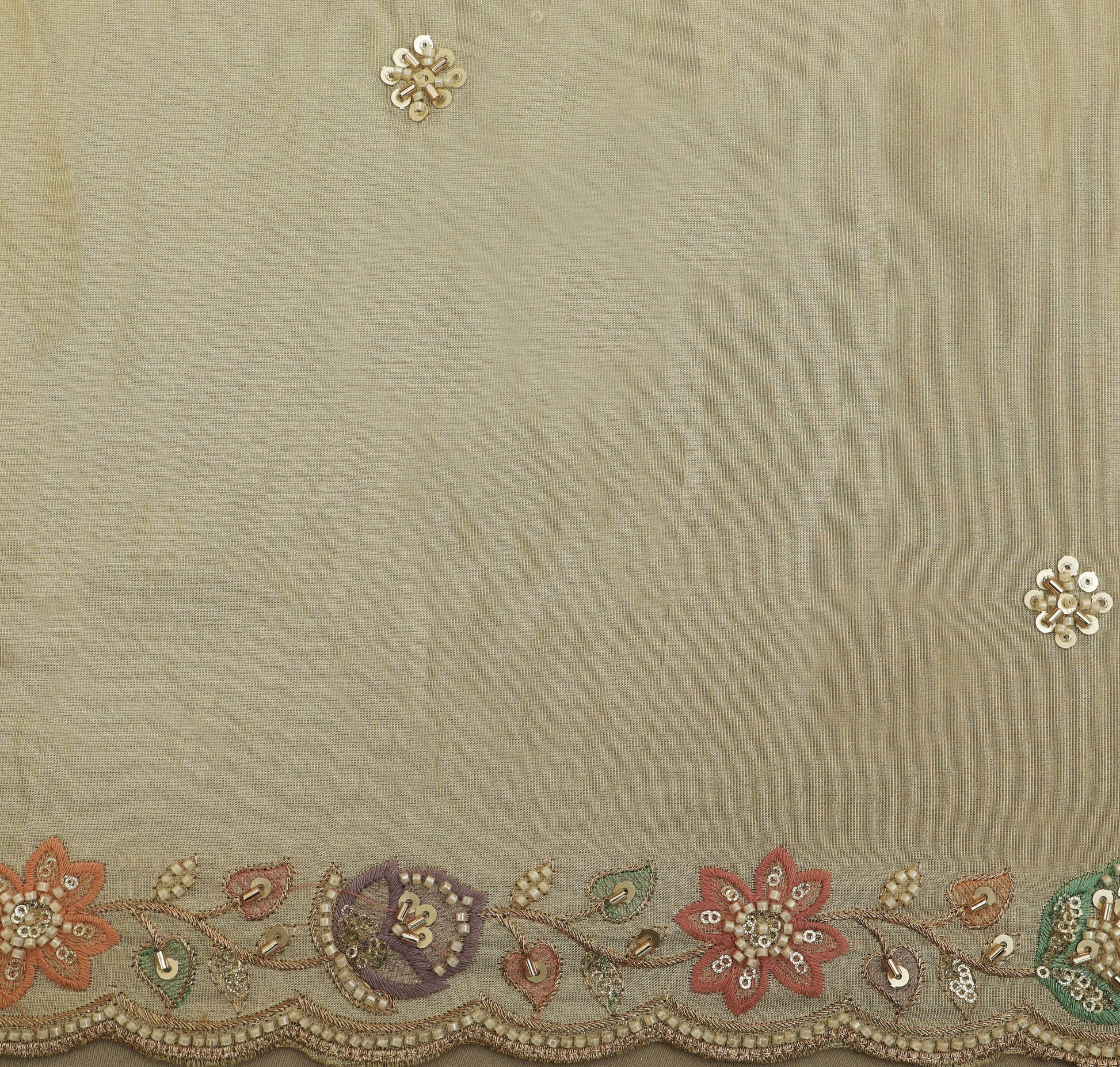 Enhance any garment with our Beige Color Tissue Sequins Embroidery Fabric. This versatile fabric adds a touch of elegance with its neutral beige color and beautiful sequin embroidery. Perfect for special occasions or everyday wear, our fabric is expertly crafted and guaranteed to elevate your wardrobe.
