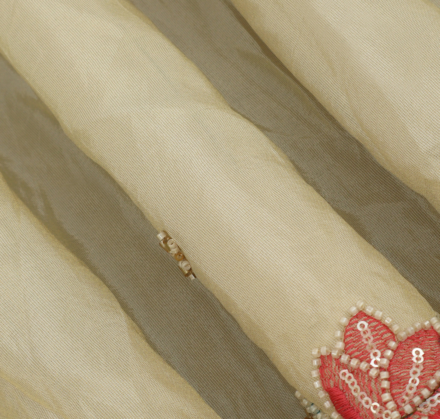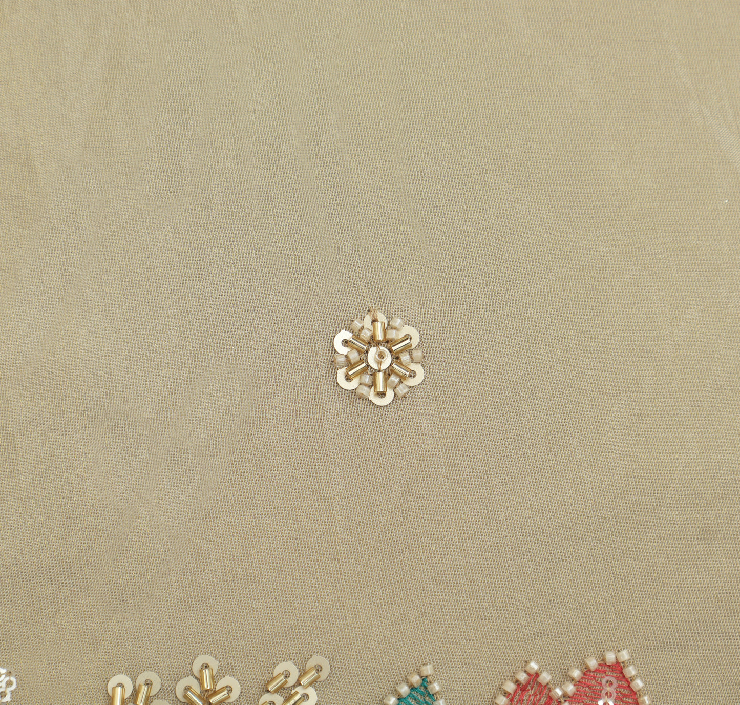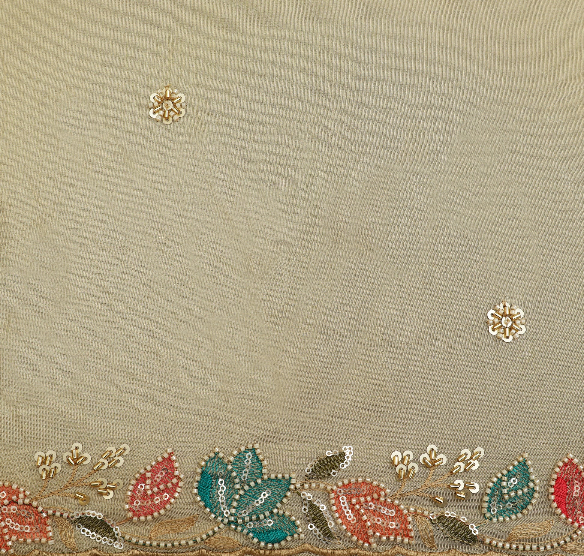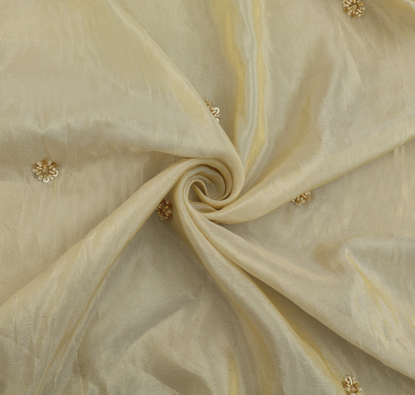 Beige Color Tissue Sequins Embroidery Fabric