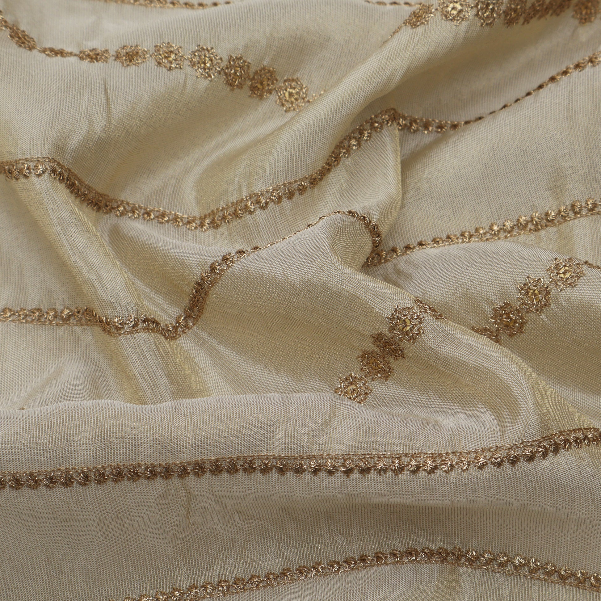 This expertly-woven Beige Color Tissue Stripe Fabric offers a sophisticated touch to any project. Made of high-quality fibers, it boasts a smooth and durable texture, perfect for creating stylish and elegant garments or home decor items.
