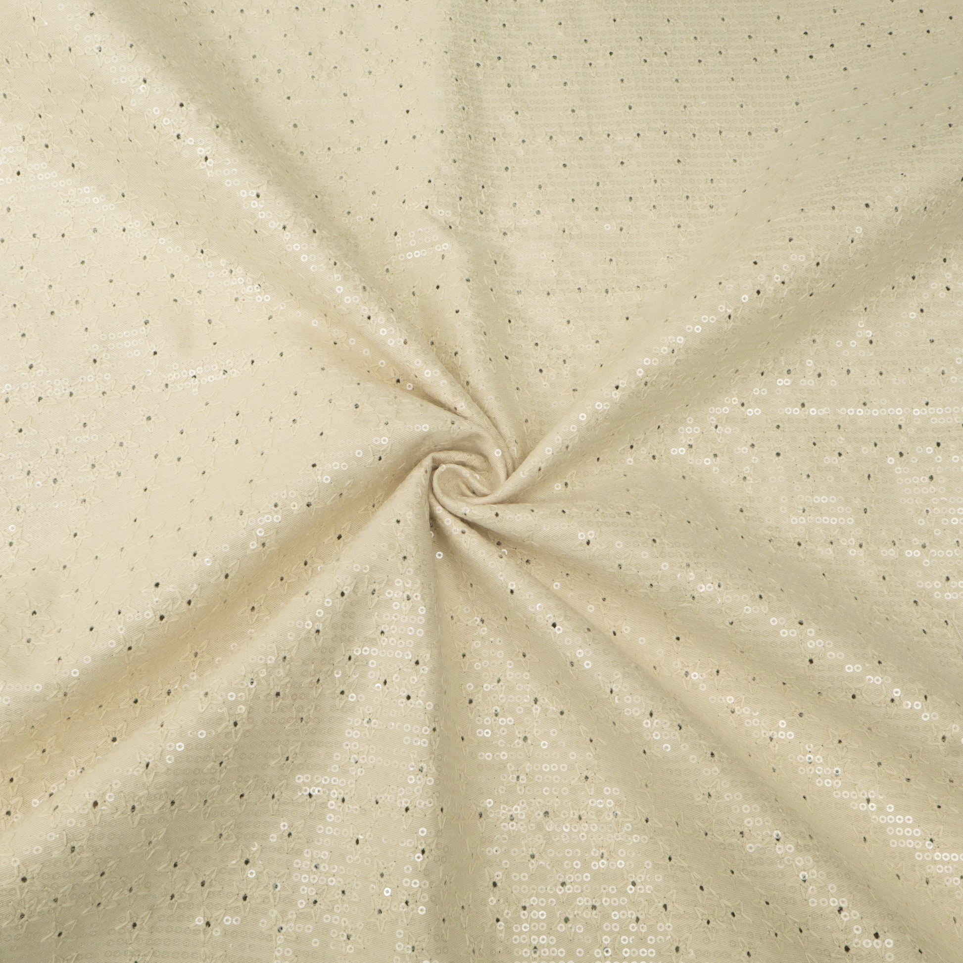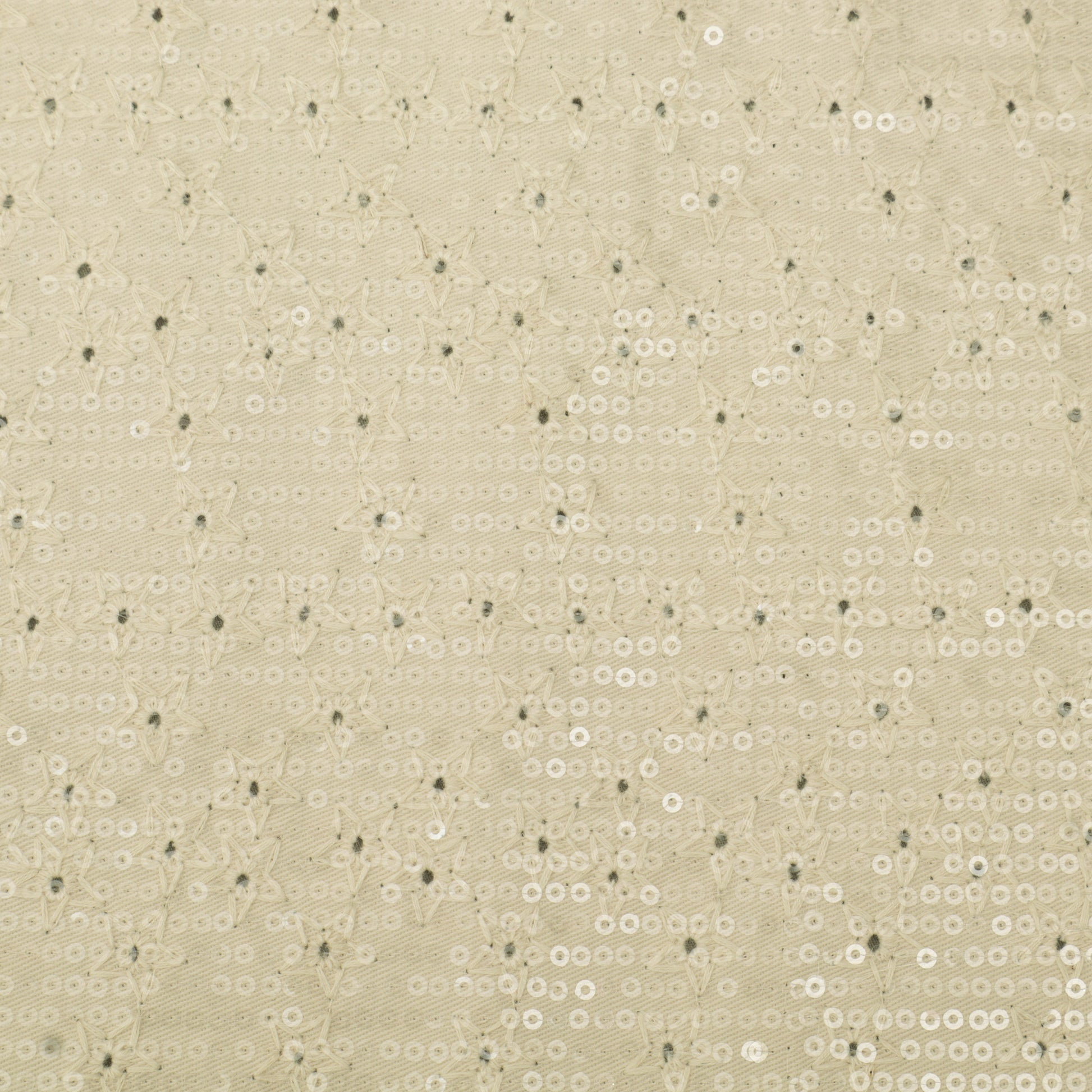 Beige Sequins Denim Embroidery