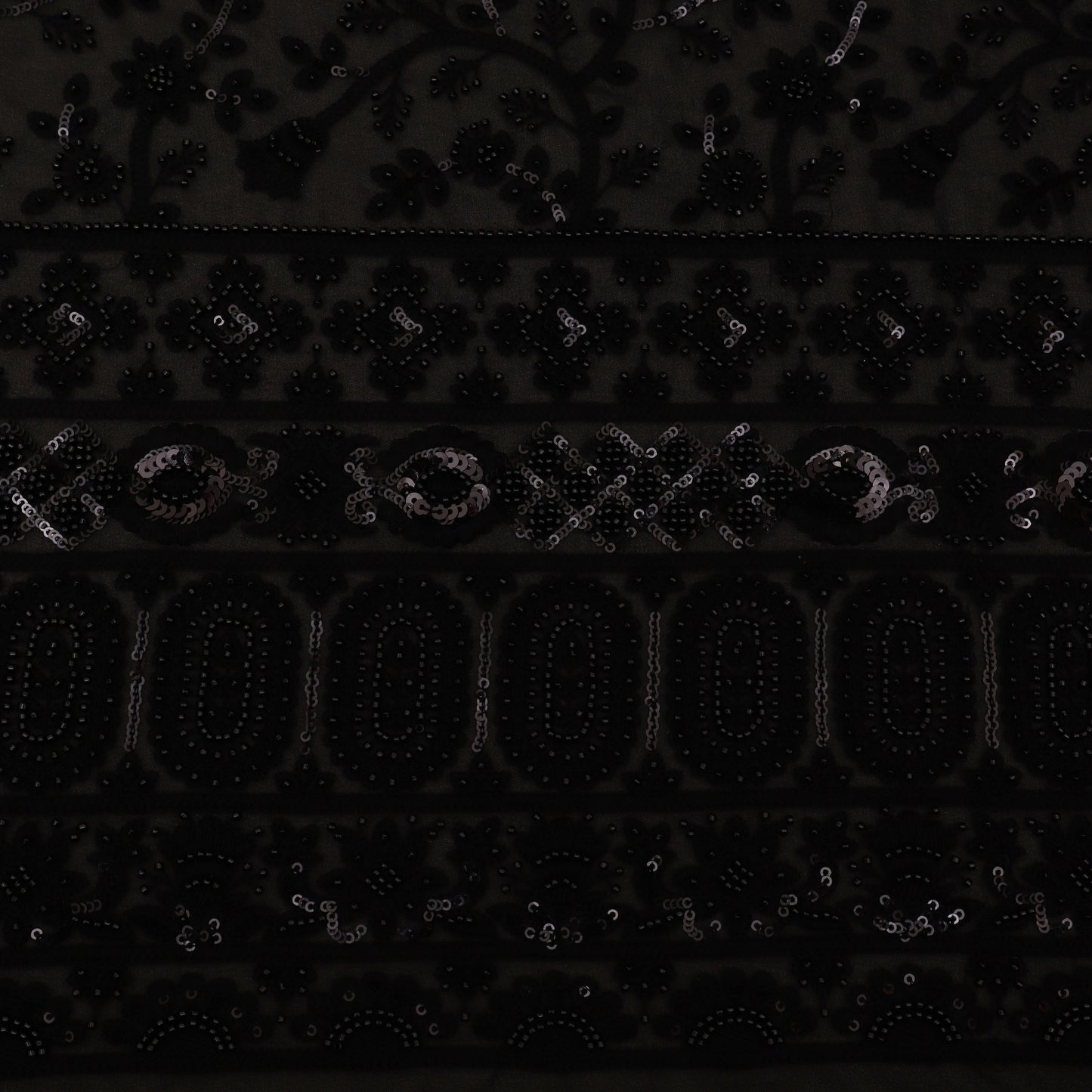 Expertly crafted with precision, this black color georgette embroidery fabric is sure to elevate your fashion game. With its intricate embroidery and lightweight georgette material, it offers the perfect combination of style and comfort, making it an ideal choice for any occasion.