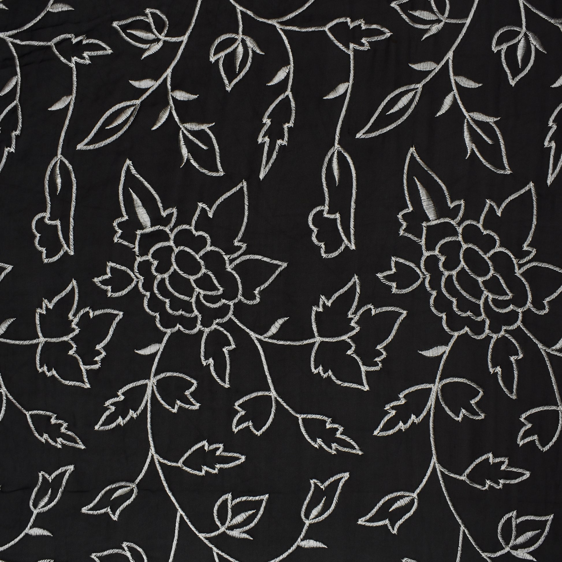 This Black Color Organza Embroidery Fabric features a classic black color and intricate embroidery details. Made of high-quality organza, it is lightweight and airy, perfect for creating elegant and sophisticated garments. Ideal for special occasions and formal wear.