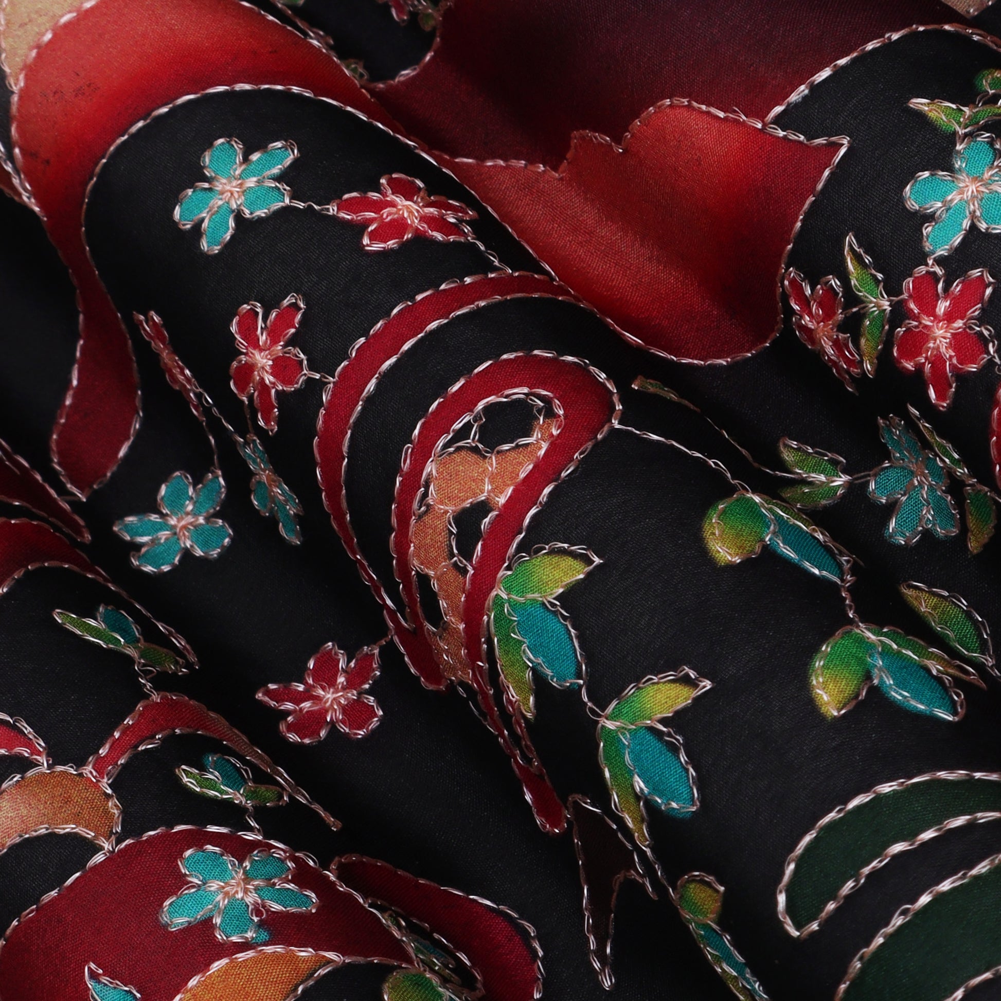 Black Color Tissue Position Print Embroidery Fabric