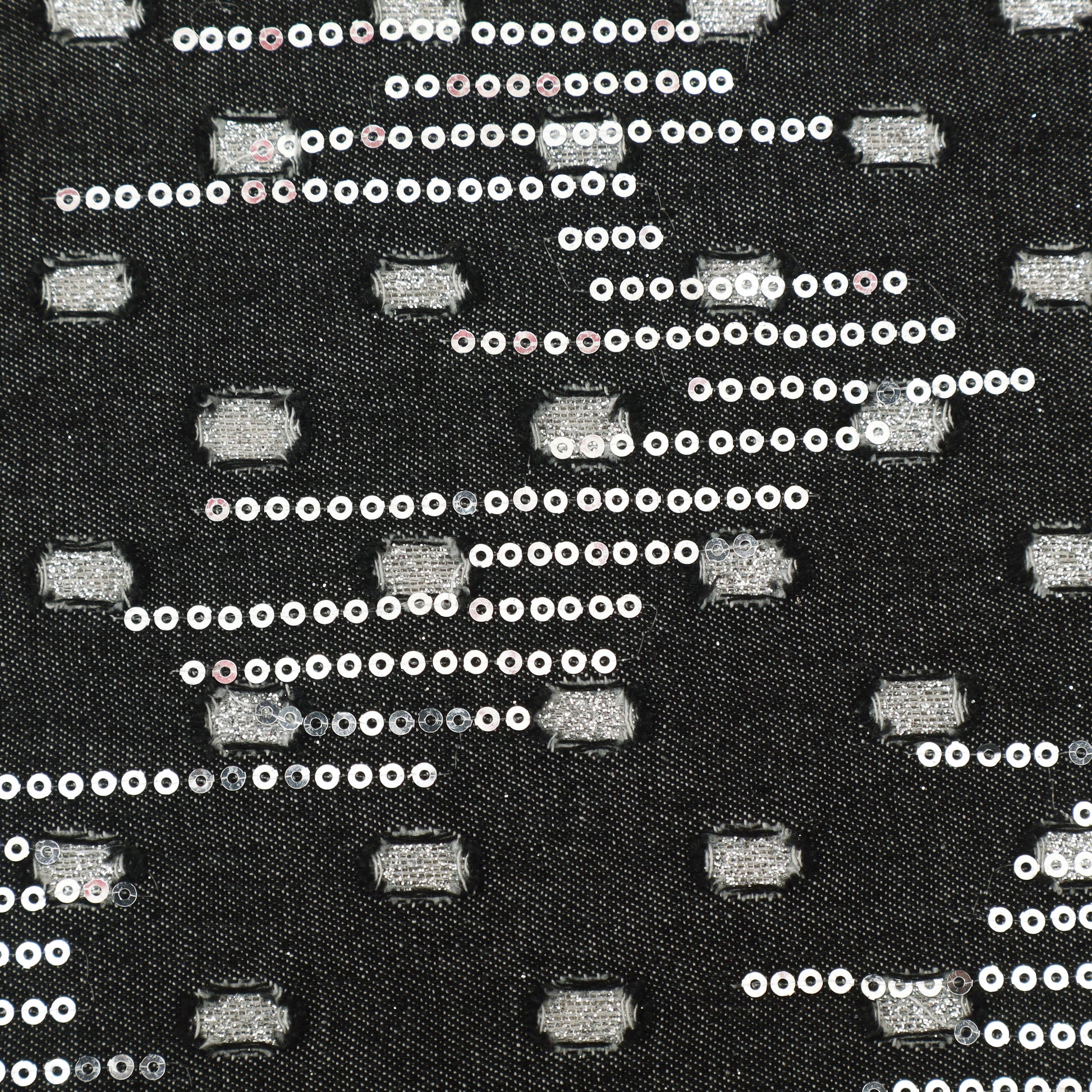Black Silver Sequin Denim Fabric