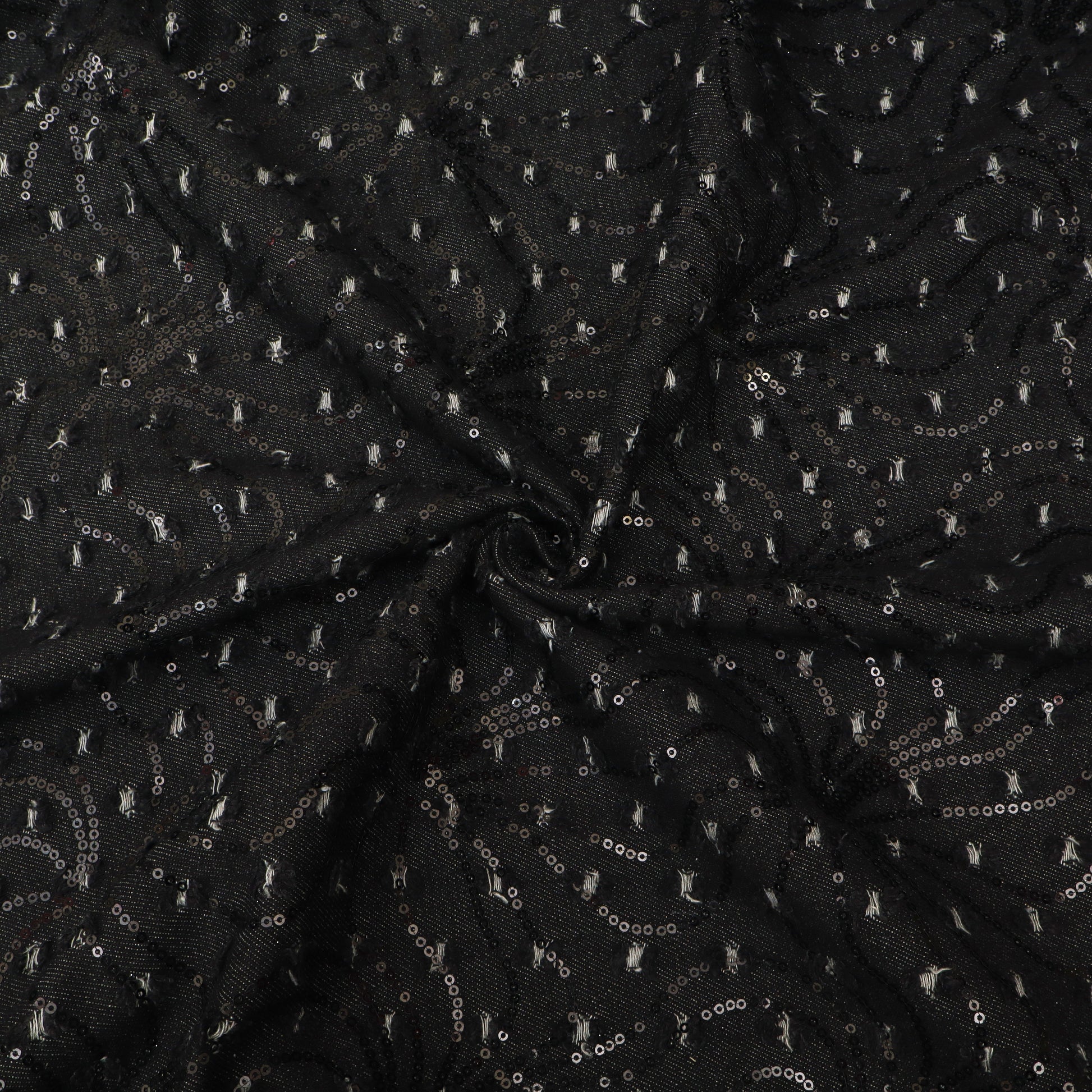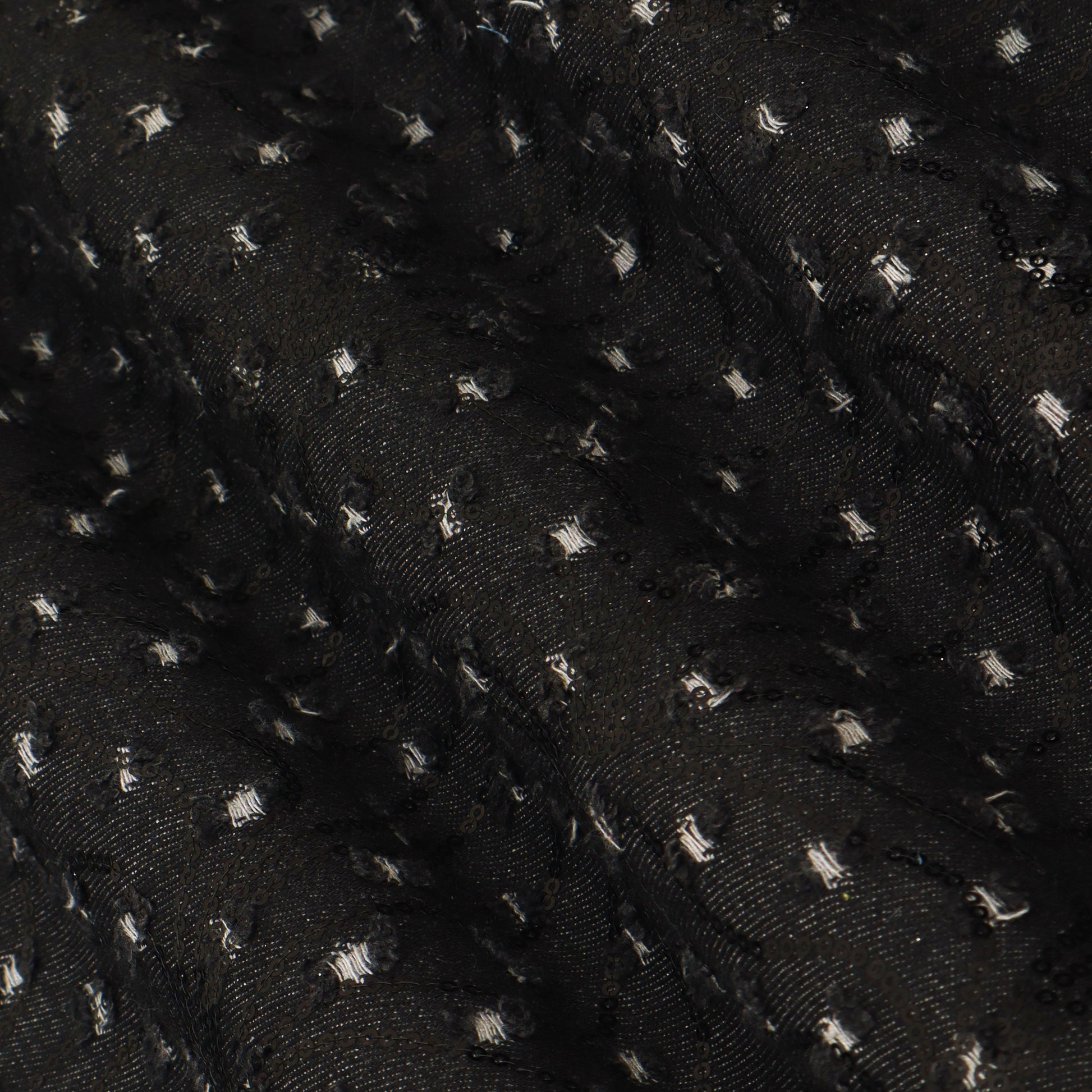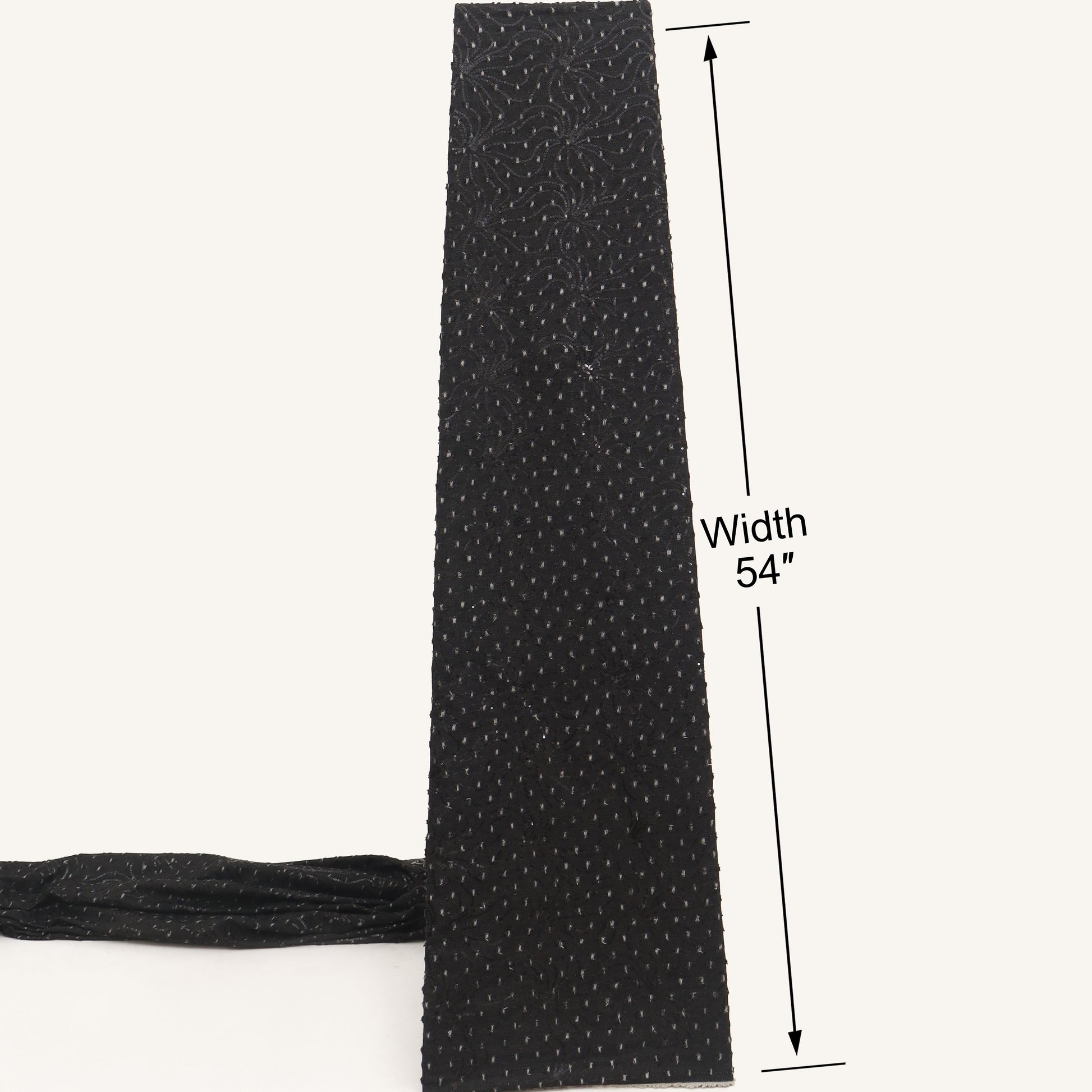 Elevate your outfit creations with this Black Textured Fabric. Designed with tiny raised woven dots across the surface, this fabric brings subtle richness and detail to any garment. The lightweight georgette base offers a soft, flowy drape that works beautifully for dresses, kurtis, tops, dupattas, and festive wear.