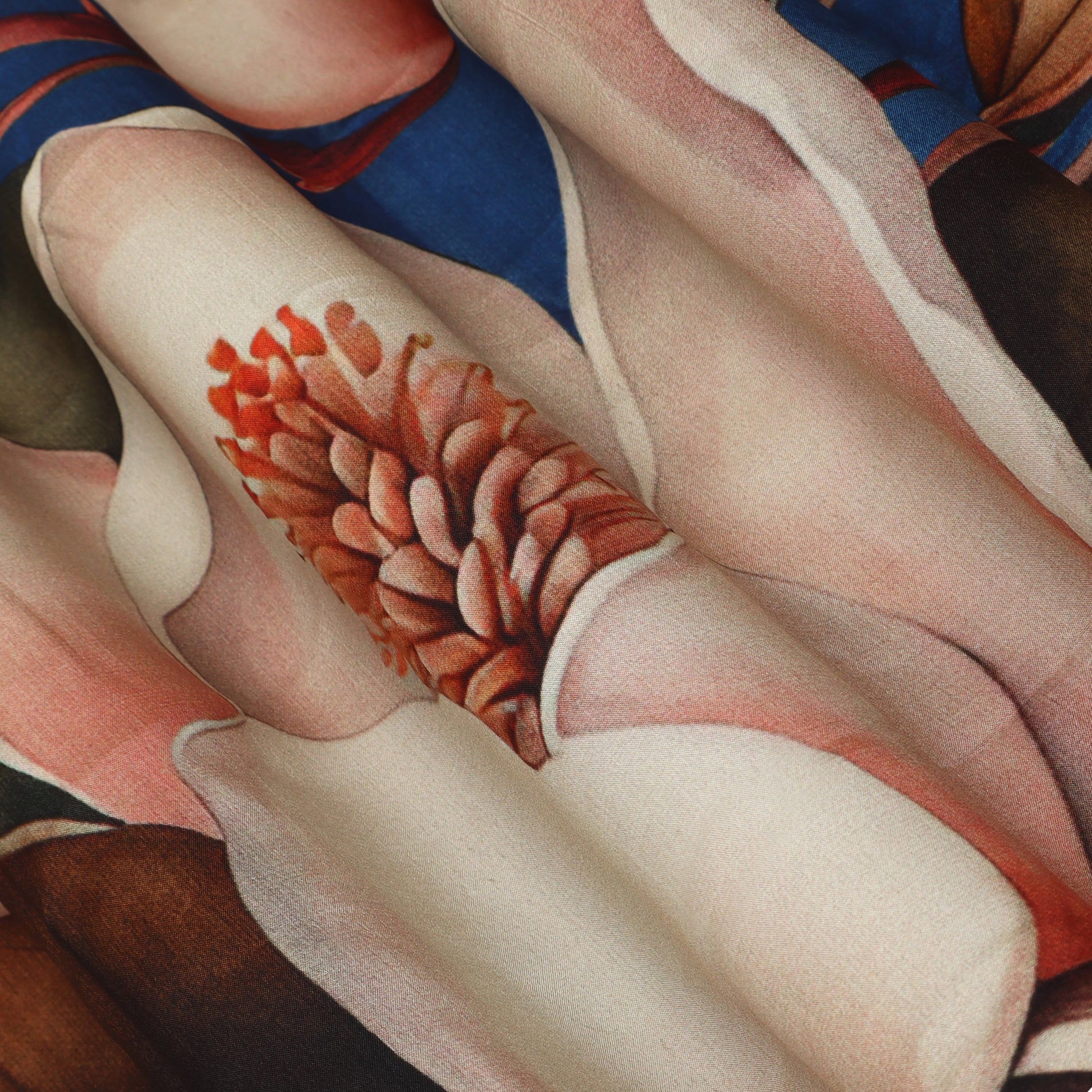 Crafted with a refined finish, this premium satin fabric showcases floral patterns with clarity and depth. Its soft texture and flowing movement add a luxurious feel to contemporary and classic apparel designs.