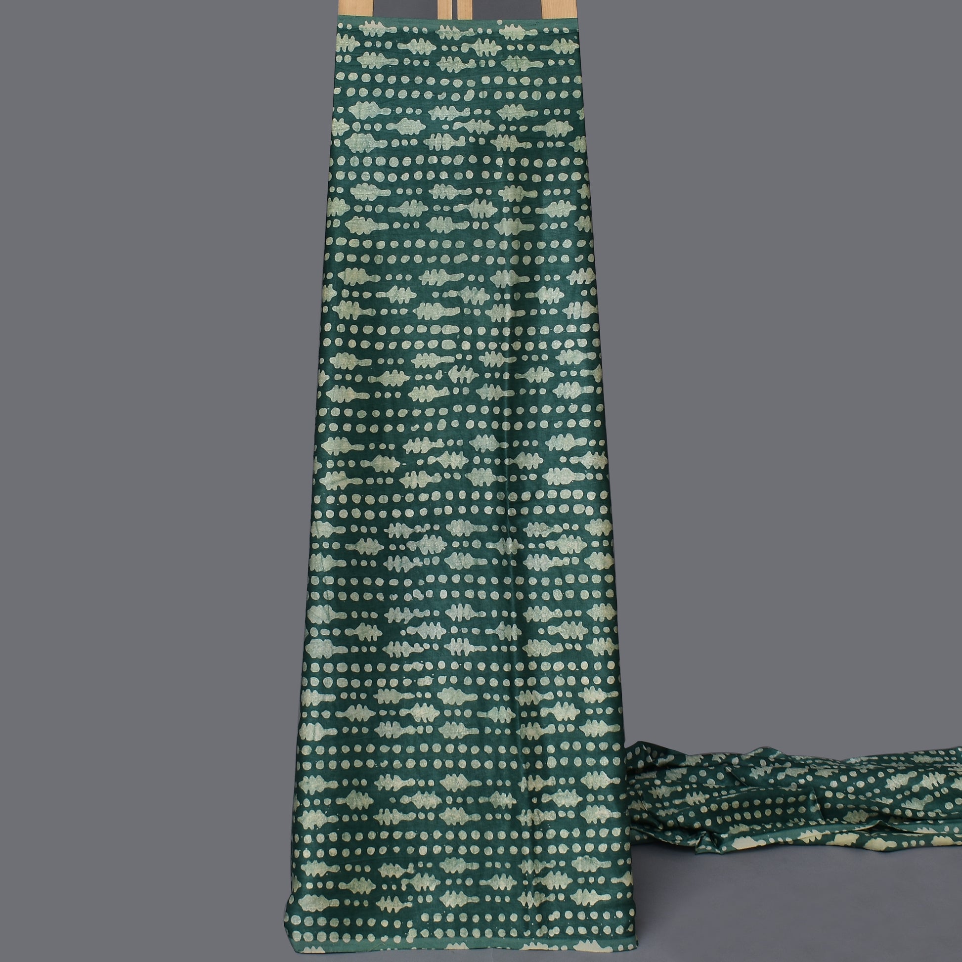 Bottle Green Color Gajji Silk Batik Print Fabric