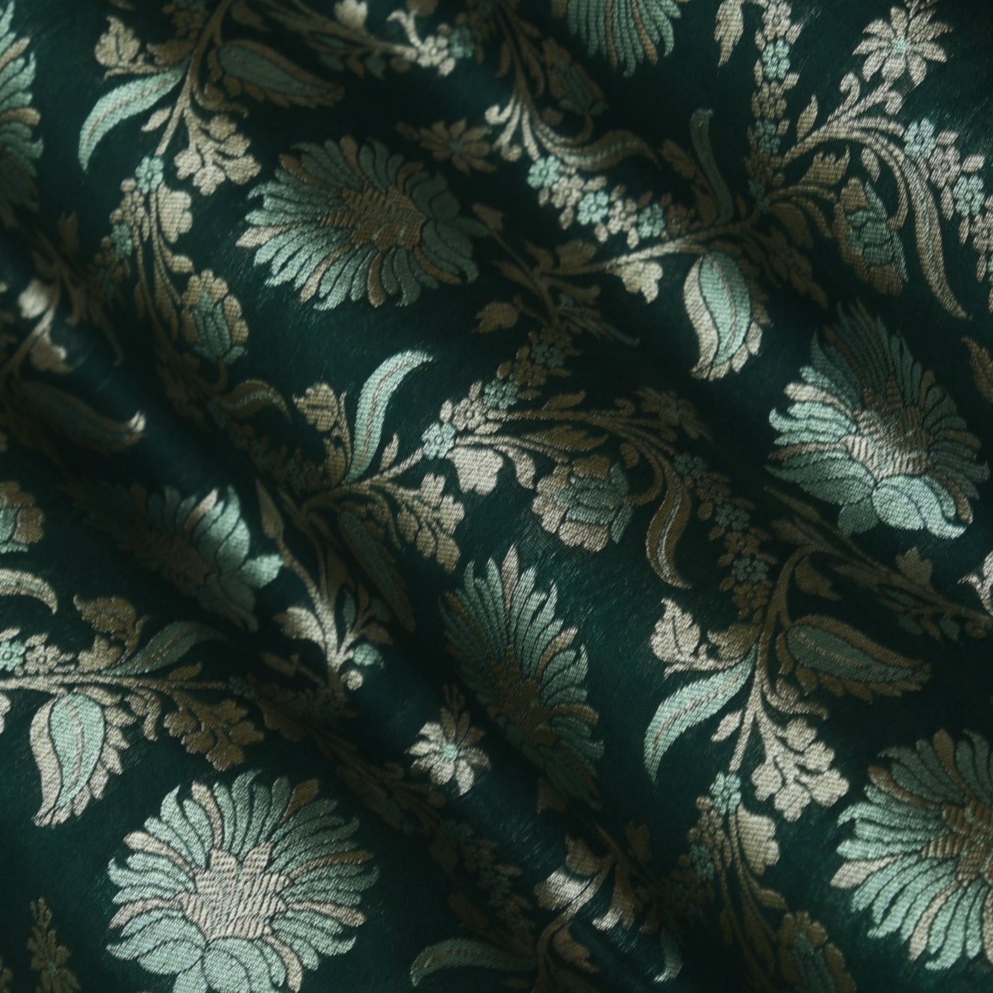 Experience the luxurious feel and rich color of our Bottle Green Kadwa Brocade Fabric. Expertly crafted with traditional techniques, this fabric exudes elegance and sophistication. Perfect for creating exquisite formal wear or adding a touch of opulence to your home decor. Available now in a stunning bottle green color.