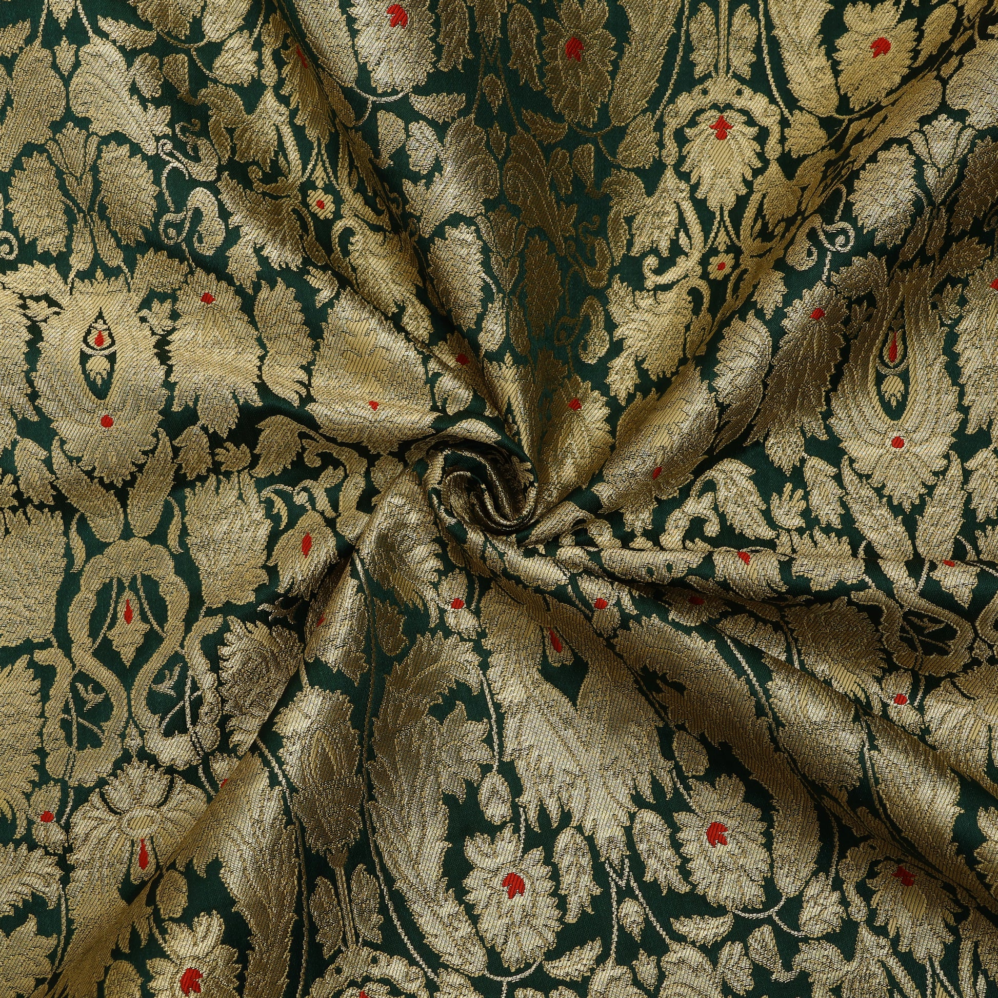 Kimkhab Brocade is a royal and heritage-rich fabric celebrated for its heavy weave and luxurious character. Crafted using a richly colored base and intricately woven with metallic zari threads, this fabric features dense floral and paisley-inspired motifs that create a grand, traditional look. The elaborate patterns appear embossed due to the thickness and tightness of the weave, giving Kimkhab its unmistakable opulent identity.