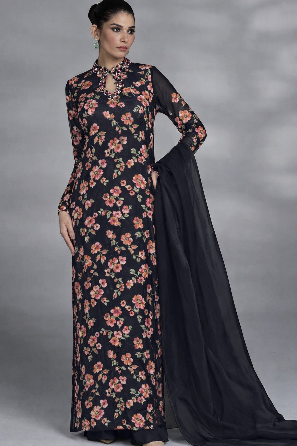 Crafted for high-end fashion, this floral brasso velvet fabric combines comfort, style, and visual depth. The delicate transparency paired with plush detailing enhances the overall silhouette, making it ideal for sophisticated designs.