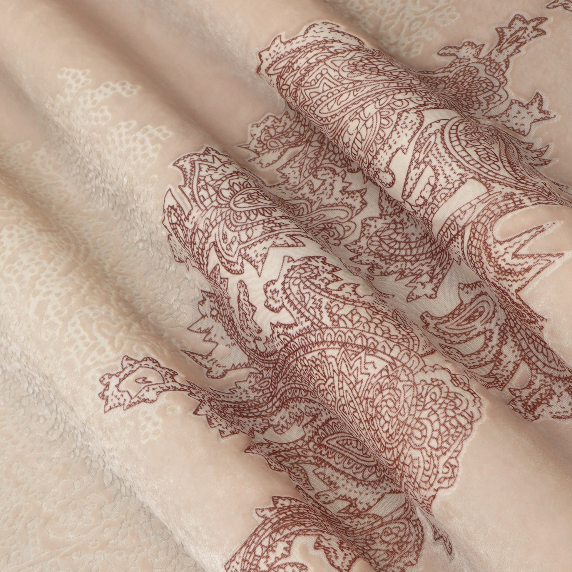 With its velvety texture and artistic motifs, this Brasso fabric delivers a graceful blend of comfort and sophistication. The fabric flows beautifully, elevating the overall appearance of finished garments.