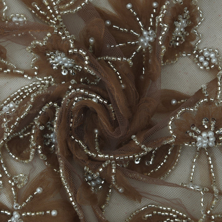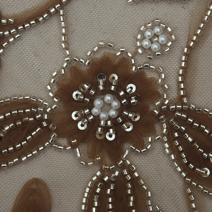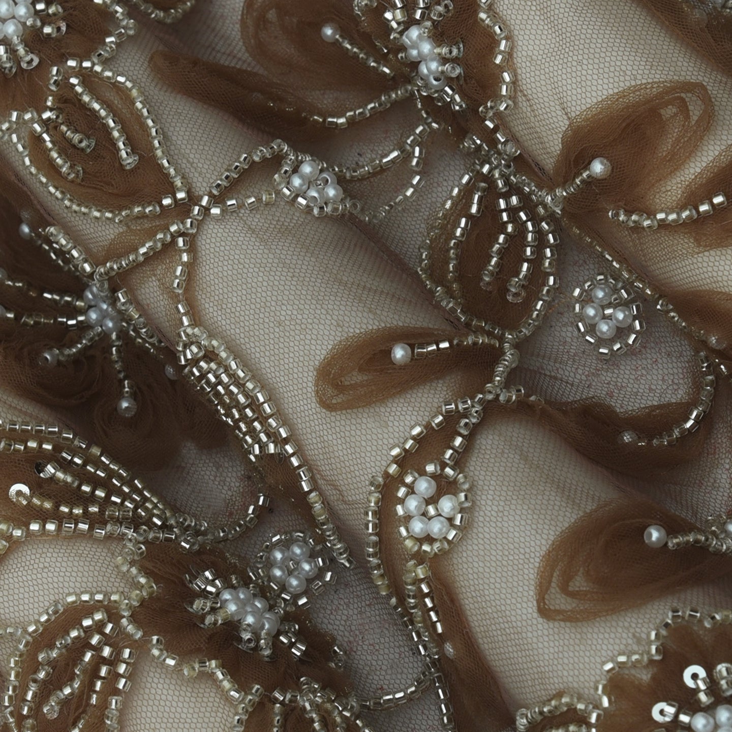 Experience the luxurious feel of our Brown Color Net Sequins Embroidery Fabric. Made from high-quality materials, this fabric boasts intricate sequin embroidery that adds a touch of elegance and glamour to any garment or project. With its versatile brown color, it is perfect for creating stunning evening wear or adding a touch of sparkle to your everyday wardrobe. Upgrade your fashion game with our premium fabric.